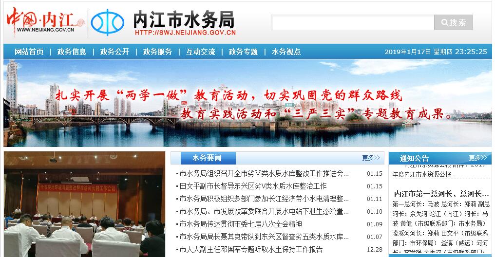 根据《中共内江市委 内江市人民政府关于印发〈内江市人民政府机构改革方案〉和〈关于内江市人民政府机构改革方案的实施意见〉的通知》(内委发〔2010〕10号),设立内江市水务局(简称市水务局),为市政府工作部门。其主要职责:(一)贯彻执行国家有关水行政管理工作的方针、政策和法律、法规,起草有关地方性规范性文件。负责保障水资源的合理开发利用,拟订水利战略规划和政策,组织编制全市重要江河湖泊的流域综合规划、防洪规划等重大水利规划,按规定制定水利工程建设有关制度并组织实施,负责提出水利固定资产投资建议,按照规定权限审批、核准相关固定资产投资项目,提出市级水利建设投资安排建议并组织实施。(二)负责生活、生产经营和生态环境用水的统筹兼顾和保障。实施水资源的统一监督管理,拟订全市和跨县(区)水中长期供求规划、水量分配方案并监督实施,组织开展水资源调查评价工作,按规定开展水能资源调查工作,负责重要流域、区域以及重大调水工程的水资源调度,组织实施取水许可、水资源有偿使用制度和水资源论证、防洪论证制度。(三)负责水资源保护工作。组织编制水资源保护和水源地保护规划,组织拟订重要江河湖泊的水功能区划并监督实施,核定水域纳污能力,提出限制排污总量建议,指导饮用水水源保护工作,指导地下水开发利用和城市规划区地下水资源管理保护工作。(四)负责防治水旱灾害,承担市政府防汛抗旱指挥部的具体工作。组织、协调、监督、指挥全市防汛抗旱工作,对重要江河湖泊和重要水利工程实施防汛抗旱调度和应急水量调度,编制全市防汛抗旱应急预案并组织实施,指导水利突发公共事件应急管理工作。(五)负责节约用水工作。拟订全市节约用水政策,编制节约用水规划,制定有关标准,指导和推动节水型社会建设工作。(六)负责城乡供排水管理工作。负责拟定城乡供水排水规划;负责城乡供水企业的资质管理,制定全市供水行业的服务指标并实施监督检查;负责全市供水价格测算的组织管理;负责城乡管网供水管理和饮用水卫生安全的监督管理;负责协调城镇建设中截污干管的改、扩、建工作;指导供排水安全生产工作;组织实施全市排水许可;负责城乡污水处理的监督管理;负责组织污水处理费征收工作。(七)指导水利设施、水域及其岸线的管理与保护,指导全市重要江河、湖泊、水库、滩涂的治理和开发,指导水利工程建设与运行管理,组织实施具有控制性或跨县(区)及跨流域的重要水利工程建设与运行管理,负责河道采砂的统一监督管理工作。(八)负责防治水土流失。拟订水土保持规划并监督实施,组织实施全市水土流失的综合防治、监测预报并定期公告,负责有关重大建设项目水土保持方案的审批、监督实施及水土保持设施的验收工作,指导重点水土保持建设项目的实施。(九)指导农村水利工作。组织协调农田水利基本建设,指导农村饮水安全、节水灌溉等工程建设与管理工作,指导农村水利社会化服务体系建设。按规定指导农村水能资源开发工作,指导水电农村电气化和小水电代燃料工作。(十)负责重大涉水违法事件的查处,协调、仲裁跨县(区)水事纠纷,指导水政监察和水行政执法工作。负责水利建设工程项目的招标投标活动的监督执法。依法负责水利行业安全生产工作,组织、指导水库大坝、水电站大坝等水利工程的安全监管,组织实施水利工程建设的监督,指导水利建设市场的监督管理。(十一)开展水利科技和对外合作交流工作。组织开展水利行业质量监督工作,拟订水利行业的地方技术标准、规程规范并监督实施,组织重大水利科学研究、技术推广和成果管理,承担水利统计工作。(十二)负责水产渔政工作。拟订渔业资源保护、利用规划,负责全市渔业生产,指导水产品加工、流通和市场建设,负责水产品质量安全管理和水生动物的防疫、境内检疫工作以及渔药、渔饲料使用环节的监督检查,负责水生生物自然保护区和水产养殖资源保护区管理,实施渔业环境监测,牵头查处渔业污染事故,协调仲裁重大渔事纠纷,查处重大渔政案件,负责渔船管理,指导渔业安全生产。(十三)贯彻执行国家大中型水利水电工程移民迁建安置、后期扶持的方针、政策和法律、法规,拟订有关具体政策措施并组织实施。制订大中型水利水电工程移民工作年度计划,管理和监督全市大中型水利水电工程移民安置实施计划,组织移民安置验收,后期扶持和监督评估。(十四)承担市政府公布的有关行政审批事项。(十五)承办市政府交办的其他事项。