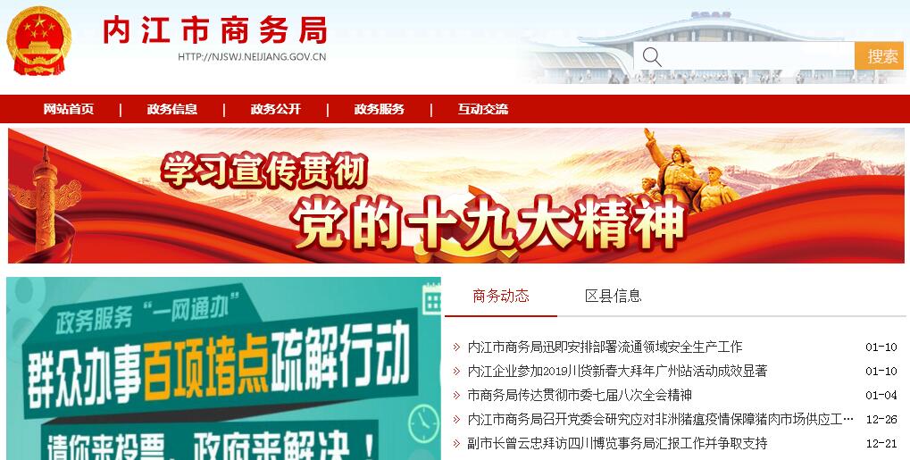 内江市商务局主要职责:(一)贯彻落实国家、省有关国内外贸易、外商投资和国际经济合作的法律、法规和方针、政策,拟订全市国内外贸易、外商投资和对外经济合作的相关政策规定,制定全市商务发展规划、年度计划并组织实施。(二)承担全市服务业发展的组织实施和协调职责,推进流通产业结构调整,加快新兴先导服务业发展,指导流通企业改革、商贸服务业和社区商业发展,提出促进商贸企业发展的政策建议,推动流通标准化和连锁经营、商业特许经营。(三)研究提出引导国内外资金投向市场体系建设的政策,编制大宗产品批发市场规划,指导城市商业网点规划和商业体系建设工作,推进农村市场体系建设,组织实施农村现代流通网络工程,促进城乡市场一体化发展。(四)承担牵头协调全市整顿和规范市场经济秩序工作的责任,拟订规范市场运行和流通秩序的政策,推动商务领域信用建设,指导商业信用销售,建立市场诚信公共服务平台,按有关规定对特殊流通行业、酒类流通进行监督管理,承担生猪屠宰管理的相关工作和茧丝绸协调工作。(五)承担组织实施重要消费品市场调控和重要生产资料流通管理的责任,负责建立健全生活必需品市场供应应急管理机制,监测分析市场运行、商品供求状况,调查分析商品价格信息,进行预测预警和信息引导,按分工负责重要消费品储备管理和市场调控工作。(六)拟订促进转变外贸增长方式的政策措施,指导对外贸易行业执行国家进出口商品、加工贸易管理办法和进出口管理商品、技术目录,组织实施重要工业品、原材料和重要农产品进出口总量计划,会同有关部门协调大宗进出口商品和出口加工区的业务工作,指导贸易促进活动和外贸促进体系建设。(七)依法监督技术引进、设备进口、国家限制出口技术工作,推进进出口贸易标准化,牵头负责发展服务贸易的相关工作,推动服务外包平台建设。(八)拟订应对经济全球化、区域经济合作的对策措施,加强与自由贸易区、港澳台地区的商贸合作,推进贸易和投资便利化。(九)承担组织协调反倾销、反补贴、保障措施和技术性贸易壁垒等与进出口公平贸易相关工作的责任,建立进出口公平贸易预警机制,牵头开展对外贸易调查、产业损害调查和对经营者集中行为的反垄断审查,指导协调产业安全应对、企业在国外的反垄断应诉工作和国外对我市出口商品的反倾销、反补贴、保障措施的应诉工作。(十)指导全市外商投资促进和管理工作,参与制订外商投资政策和改革方案并组织实施,统计分析全市外商投资情况,依法监督检查外商投资企业执行有关法律法规规章、合同章程的情况并协调解决有关问题。(十一)负责全市对外经济合作工作,拟订并执行对外经济合作政策,依法管理和监督对外承包工程、对外劳务合作和出境就业等,承担境外投资管理工作,牵头协调外派劳务和赴境外就业人员的权益保护工作,组织管理我市承担的国家对外援助工作,管理多双边对我市的无偿援助和赠款。(十二)管理我市赴境外举办的各种商品交易和经贸推介活动,组织、指导和监督以内江市名义在境内举办的各种商贸交易会、展览会、展销会等活动。(十三)规划全市商务系统电子政务、公共商务信息服务体系建设并组织实施。(十四)推动电子商务平台建设,为中小企业电子商务推广和应用提供支持;开展电子商务交易、网络零售、电子商务服务业等咨询服务;开展电子商务培训,宣传及应用推广活动。