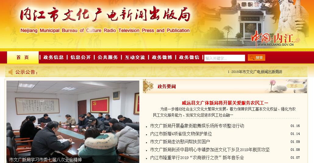内江市文化广电新闻出版局主要职责:(一)贯彻执行党和国家文化艺术工作、新闻出版(版权)、广播电影电视工作的方针、政策和法律、法规,拟订全市文化、新闻出版(版权)、广播电影电视宣传、创作的政策措施及规章制度、发展战略、发展规划并组织实施,推进文化和新闻出版(版权)领域以及广播电影电视体制机制改革。(二)管理全市社会文化、新闻出版和广播电影、电视、电台、广电网络事业,指导图书馆、文化馆(站)、博物馆事业和基层文化建设。(三)扶持和促进文化和新闻出版产业建设与发展,推进重大文化产业项目建设和对外文化产业交流与合作。制订全市广播电影电视事业、产业发展规划,指导、协调全市广播电影电视事业、产业发展。(四)规划、引导公共文化产品生产,推进文化艺术领域和新闻出版(版权)领域的公共文化服务,指导市级重点文化设施建设、基层文化设施建设和广播电影电视重点基础设施建设。(五)管理全市文学艺术事业,指导艺术创作与生产,扶持代表性、示范性、实验性文化艺术品种,推动各门类艺术及艺术教育、科研事业的发展,管理全市性重大文化艺术和广播电影电视活动。(六)组织实施全市文物考古发掘、保护管理、开发利用和文物执法工作。(七)组织实施全市非物质文化遗产保护、传承和普及工作。(八)负责文艺类产品网上传播的前置审批,负责对互联网上网营业场所实行经营许可和动漫、网络游戏的监管工作。(九)负责对新闻出版单位、出版物内容、出版物市场、出版活动和印刷业的监管,查处违规活动。(十)负责全市出版物市场的“扫黄打非”工作,组织查处非法出版物和非法出版活动的大案要案。(十一)监督管理市内报刊社、通讯社分支机构和记者站,负责全市新闻机构记者证的审核与管理,组织查处新闻违法活动。(十二)负责著作权管理工作,处理涉外著作权关系及著作权的对外交流与合作,依法查处著作权侵权案件。(十三)指导重要文件文献、重点出版物和教科书的出版、印刷和发行工作,承担古籍整理出版的组织协调工作。(十四)指导文化市场综合执法工作,监督管理文化市场、新闻出版(版权)市场、广播电影电视市场。审查广播电影电视节目、信息网络视听节目、公共视听载体播放节目的内容和质量;负责对文化艺术经营活动和新闻出版活动进行行业监督,负责对从事演艺活动、出版活动、广播电影电视节目制作的民办机构的监管工作。(十五)管理对外及港澳台文化、广播电影电视交流、文化宣传工作,组织实施大型对外文化交流活动;负责全市广播电影电视节目的进口和收录管理。(十六)承担市中区广播电影电视管理职责。(十七)承担市政府公布的有关行政审批事项。(十八)承办市政府交办的其他事项。