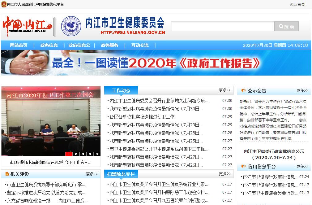 内江市卫生健康委员会主要职责:(一)组织拟订全市卫生健康政策。负责拟订卫生健康事业发展地方性政策、规划,制定卫生健康地方标准与技术规范并组织实施。统筹规划全市卫生健康资源配置。制定并组织实施推进卫生健康基本公共服务均等化、普惠化、便捷化和公共资源向基层延伸等政策措施。(二)牵头推进全市深化医药卫生体制改革。研究提出深化改革重大政策、措施的建议。牵头组织全市分级诊疗、现代医院管理、全民医保、药品供应保障、综合监管5项基本医疗卫生制度建设。制定并组织实施推动卫生健康公共服务提供主体多元化、提供方式多样化的政策措施。(三)制定并组织落实全市疾病预防控制规划、免疫规划以及严重危害人民健康的艾滋病等重大传染病、寄生虫病、地方病等公共卫生问题的干预措施。负责全市卫生应急工作,组织和指导全市突发公共卫生事件预防控制和各类突发公共事件的医疗卫生救援。发布法定报告传染病疫情信息、突发公共卫生事件应急处置信息。依照国家检疫传染病和监测传染病目录,参与开展检疫监测工作。(四)贯彻落实国家应对人口老龄化政策措施。负责推进老年健康服务体系建设和医养结合工作。承担市老龄工作委员会日常工作。(五)贯彻落实国家药物政策和国家基本药物制度。开展药械使用监测、临床综合评价和短缺药品预警,组织执行国家药典和国家基本药物目录,落实基本药物使用政策。组织实施食品安全风险监测,依法制定并公布食品安全地方标准。开展食品安全企业标准备案。(六)负责职责范围内的职业卫生、放射卫生、环境卫生、学校卫生、公共场所卫生、饮用水卫生等公共卫生的监督管理。负责传染病防治监督,健全卫生健康综合监管体系。(七)制定全市医疗机构、医疗服务行业管理办法并监督实施,建立医疗服务评价和监督管理体系。会同有关部门实施卫生健康专业技术人员资格标准。制定并组织实施医疗服务规范、标准和卫生健康专业技术人员执业规则、服务规范。负责医疗机构、人员和行为的日常监管。(八)负责全市计划生育管理和服务工作。开展人口监测预警,研究提出人口与家庭发展相关政策建议,完善计划生育政策。指导市计划生育协会的业务工作。(九)指导县(市、区)卫生健康工作。指导基层医疗卫生、妇幼健康服务体系和基层卫生队伍建设。推进卫生健康科技创新发展。(十)负责市确定的保健对象的医疗保健工作。负责市直有关部门(单位)离休干部医疗管理工作。负责重要会议与重大活动的医疗卫生保障工作。(十一)依法依规履行卫生健康行业安全生产监管职责。负责职责范围内的生态环境保护、审批服务便民化等工作。(十二)完成市委、市政府交办的其他任务。