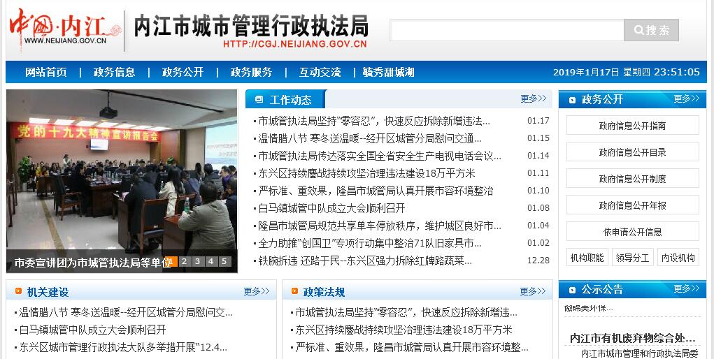 内江市城市管理行政执法局主要职责:(一)贯彻执行城市管理的方针、政策和法律法规,拟订城市管理行政执法的规范性文件,负责本系统、本部门依法行政工作,落实行政执法责任制。(二)负责城区城市管理的统筹规划、标准制定、工作指导、综合协调、监督检查和考核评比。负责县城市管理的工作指导、监督检查和考核评比。(三)负责城市环境卫生工程项目及设施的规划编制、建设工作。(四)负责城区户外广告设施、报刊亭和彩票亭等设置的规划定点工作。(五)负责指导、协调城区市容环境卫生的监督管理工作。(六)负责指导、协调城区生活垃圾的收集、运输、处理工作。(七)负责指导、协调城区建筑垃圾运输的监督管理工作。(八)负责数字化城市管理信息系统的建设、运行和管理工作。(九)负责跨区城管综合执法的指挥调度和重大城管案件的查处工作。(十)负责指导城市管理系统人才培养和教育工作。指导和监督城市管理系统行业执业资质管理工作。开展城市管理行政执法方面的交流与合作。组织城市管理系统科技项目的研究和科技成果的推广应用。(十一)负责甜城湖保护管理的统筹、协调和处理日常事务工作。(十二)负责内江市城市管理委员会办公室的日常事务工作。(十三)承办市政府交办的其他事项。