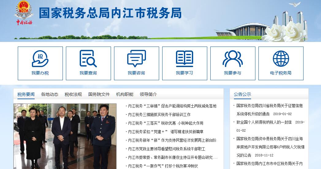 国家税务总局内江市税务局的主要职责是:(一)负责贯彻执行党的路线、方针、政策,加强党的全面领导,履行全面从严治党责任,负责党的建设和思想政治建设工作。(二)负责贯彻执行税收、社会保险费和有关非税收入法律、法规、规章和规范性文件,研究制定具体实施办法。组织落实国家规定的税收优惠政策。(三)负责研究拟定本系统税收、社会保险费和有关非税收入中长期规划,参与拟定税收、社会保险费和有关非税收入预算目标并依法组织实施。负责本系统税收、社会保险费和有关非税收入的会统核算工作。组织开展收入分析预测。(四)负责开展税收经济分析和税收政策效应分析,为国家税务总局四川省税务局和市委、市政府提供决策参考。(五)负责所辖区域内各项税收、社会保险费和有关非税收入征收管理。组织实施税(费)源监控和风险管理,加强大企业和自然人税收管理。(六)负责组织实施本系统税收、社会保险费和有关非税收入服务体系建设。组织开展纳税服务、税收宣传工作,保护纳税人、缴费人合法权益。承担涉及税收、社会保险费和有关非税收入的行政处罚听证、行政复议和行政诉讼事项。(七)负责所辖区域内国际税收和进出口税收管理工作,组织反避税调查和出口退税事项办理。(八)负责组织实施所辖区域内税务稽查和社会保险费、有关非税收入检查工作。(九)负责增值税专用发票、普通发票和其他各类发票管理。负责税收、社会保险费和有关非税收入票证管理。(十)负责组织实施本系统各项税收、社会保险费和有关非税收入征管信息化建设和数据治理工作。(十一)负责本系统内部控制机制建设工作,开展对本系统贯彻执行党中央、国务院重大决策及上级工作部署情况的督查督办,组织实施税收执法督察。(十二)负责本系统基层建设和干部队伍建设工作,加强领导班子和后备干部队伍建设,承担税务人才培养和干部教育培训工作。负责本系统绩效管理和干部考核工作。(十三)负责本系统机构、编制、经费和资产管理工作。(十四)完成国家税务总局四川省税务局和市委、市政府交办的其他工作。