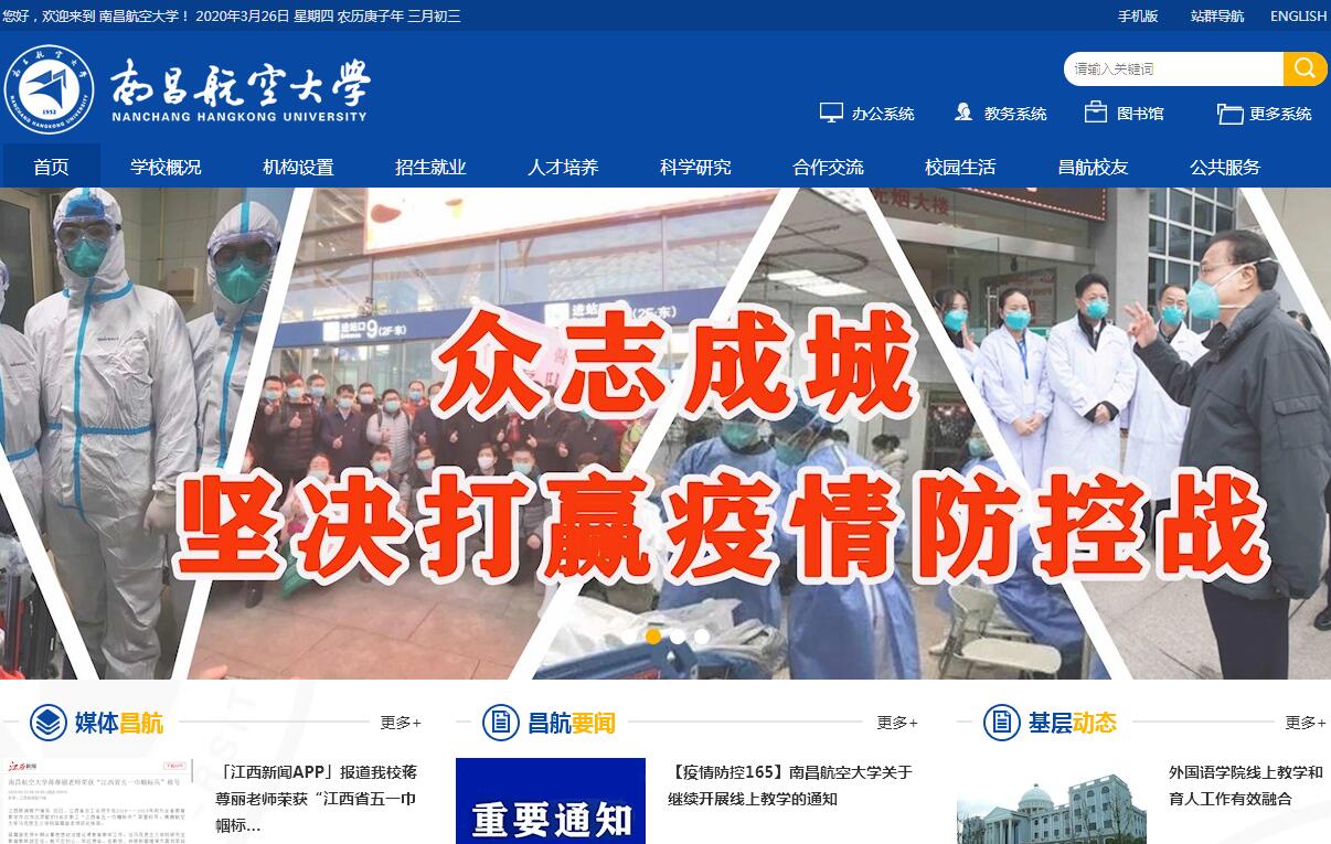 南昌航空大学是一所以工为主,工理文管经法教艺等学科协调发展的多科性大学。学校始终坚持“育人为本,质量立校,人才强校,开放兴校,特色发展”的办学理念,扎实推进内涵建设,稳步提高教学质量,是教育部本科教学工作水平评估优秀高校。2009年被确立为博士学位立项建设预测单位。南昌航空大学创建于1952年,是全国首批具有学士学位授予权单位。1985年开始培养硕士研究生,1990年获硕士学位授予权。先后隶属于航空工业部、航空航天工业部、中国航空工业总公司,1999年开始实行中央与地方共建、以地方政府管理为主的管理体制,是江西省人民政府与国家国防科技工业局共建的高等学校。学校秉承“日新自强、知行合一”的校训、“勤奋、文明、求实、创新”的校风和“团结自强、拼搏向上”的昌航精神,坚持“立足江西、面向全国,服务地方、服务国防”的服务面向,以航空国防需求为导向,积极服务国家航空工业和江西地方经济社会发展,拥有航空、国防类及相关专业25个,占学校所有专业的39.1%,拥有飞行器设计与工程、飞行器动力工程、飞行器制造工程、飞行技术、表演(空中乘务方向)等航空特色专业。目前,学校已经初步建成工科优势明显、航空特色鲜明的本科高校。学校位于“物华天宝,人杰地灵”的英雄城——南昌。校园环境优美,拥有前湖校区、上海路校区、共青城校区等3个校区,占地面积3500余亩。校舍建筑面积104万平米。拥有教学、科研设备3.9万多台套,仪器设备总值约4.4亿元。纸质图书资料200多万册,中外文期刊450种,电子图书250余万册,电子期刊5万余种,中外文数字资源数据库30个。体育活动场地面积达15.5万平米。学校设有材料科学与工程学院、环境与化学工程学院、航空制造工程学院、信息工程学院、外国语学院、飞行器工程学院(航空发动机学院、通航学院)、数学与信息科学学院、测试与光电工程学院、经济管理学院、体育学院、土木建筑学院、艺术与设计学院、马克思主义学院、文法学院、音乐学院、软件学院等16个专业学院,有国际教育学院、继续教育学院、国防生教育学院、创新创业学院等4个管理型学院,以及1个独立学院科技学院。学校拥有“江西省测试技术与控制工程研究中心”博士后科研工作站、“江西省航空材料工程技术研究中心”博士后创新实践基地。1个国家级工程实验室,25个省(部)级重点实验室(研究中心)和省级重点基地,其中2个江西省“2011协同创新”中心。拥有2个国家级实验教学示范中心,9个省级实验教学示范中心。具有16个一级学科硕士点,覆盖了55个二级学科硕士点,并具有14个工程硕士领域和3个(公共管理硕士、艺术硕士、翻译硕士)专业学位类别。现有64个本科专业,其中5个国家级特色专业,8个省级特色专业,1个国家级综合改革试点专业,6个省级综合改革试点专业,3个江西省一流学科,5个国防特色学科。学校入选教育部第二批卓越工程师教育培养计划实施高校,获批6个国家级卓越工程师教育培养计划试点专业,6个江西省卓越工程师教育培养计划试点专业。学校材料科学学科进入美国ESI全球排名前1%,步入国际高水平学科行列。学校具有推荐优秀应届本科毕业生免试攻读硕士研究生资格。与北京航空航天大学、西北工业大学、北京航空材料研究院、湖南大学、南京航空航天大学、北京师范大学等高校和科研院所联合培养博士生。学校拥有国家级教学团队1个,国家精品课程1门,国家级双语教学示范课程1门;获国家级教学成果奖4项,省级教学成果奖75项;获国家级规划教材8部,省、部级优秀教材40部。拥有3个校企共建的国家级工程实践教育中心。拥有校外实践(实习)基地332个,其中与中国南方航空工业(集团)有限公司联合申报的工程实践教育中心获批国家级大学生校外实践教育基地。学校为海军培养国防生,国防生培养的“昌航模式”成功获批为国家级人才培养模式创新实验区,教育部、中国人民解放军总政治部联合发文向全国推广我校培育国防生工作经验。学生科技创新能力不断增强。近五年,大学生共获省部级以上科技竞赛奖2800余项,大学生受理专利525件、授权420件,大学生发表论文640余篇,累计获得“国家级、省级大学生创新创业训练计划”项目190项。曾获“挑战杯”全国大学生课外学术科技作品竞赛决赛一等奖、国际2015CORE可再生能源技术顶尖设计大赛特等奖、“互联网+”大学生创新创业大赛银奖2项、第十六届全国大学生机器人大赛地面挑战赛全国总冠军、第五届中国教育机器人大赛一等奖、第30届美国匹兹堡国际发明展金奖、第五届全国高校商业精英挑战赛金奖等荣誉。由学校申报的“天宫开悟”项目,在全国“青年红色筑梦之旅”实践活动中获得新锐创意奖,并获习近平总书记回信鼓励。大学生科技创新团队“环境光催化及资源循环利用团队”荣膺“小平科技创新团队"称号。大学生创新创业基地命名为第三批江西省大学生创业孵化基地创建单位,并确定为全国“大学生KAB创业教育基地”。 在2013—2017年中国高校创新人才培养暨学科竞赛评估中我校位居全国第111位;在“全国高校团学创业教育工作指数100强”中我校位列第56位,为江西省高校之最。相继涌现“全国大学生创业英雄”朱丁亮、全国优秀共青团员陈文勇等一批批青年先进典型。“十二五”以来,在国