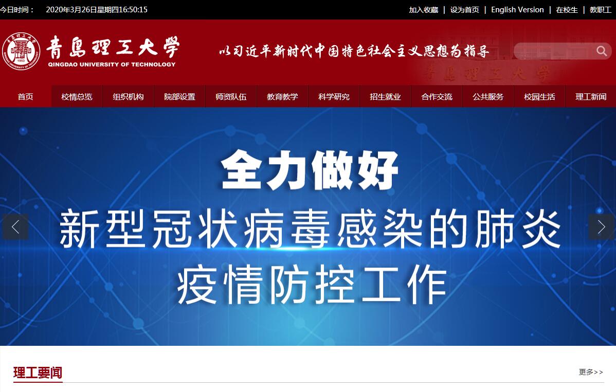 青岛理工大学是一所以工为主,理工结合,土木建筑、机械制造、环境能源学科特色鲜明,理、工、经、管、文、法、艺多学科协调发展,科学教育与人文教育相结合的多科性大学。学校是山东省重点建设的应用基础型人才培养特色名校。学校前身是1952年12月创建的“山东省青岛建筑工程学校”。1953年6月由山东省划归中央人民政府重工业部领导。1960年6月升格为“山东冶金学院”,开始招收本科生。此后,学校隶属关系几经更迭,办学层次几起几落。1978年更名为“山东冶金工业学院”,恢复本科招生,隶属冶金工业部。1985年9月更名为“青岛建筑工程学院”。1993年被国务院学位委员会批准为硕士学位授予单位。1998年11月划转山东省领导,实行“中央与地方共建,以地方管理为主”管理体制。2004年5月更名为“青岛理工大学”。2005年被国务院学位委员会批准为博士学位授予权单位。建校以来,学校构筑起本专科、硕士、博士人才培养体系,为社会培养了16万多名科学工程技术和管理方面的高级人才。学校现辖市北、黄岛、临沂三个校区,市北校区地处青岛市区,黄岛校区位于青岛经济技术开发区,临沂校区位于沂蒙革命老区费县。占地面积约216.55万平方米,校舍建筑面积100.34余万平方米。图书馆藏书约219.73万册。教学科研仪器设备总值3.59多亿元。学校现有教职工2378人,其中专任教师1437人。师资队伍中具有博士学位的510人,具有硕士学位的755人;正高级专业技术人员196人,副高级414人;博士生导师47人,硕士生导师477人。现有“海洋环境混凝土技术”创新引智基地(国家“111计划”)。特聘中国科学院院士1人、中国工程院院士3人、外籍俄罗斯联邦科学院院士1人。现有国家“千人计划”人选3人,百千万人才工程国家级人选4人,教育部新世纪优秀人才支持计划获得者3人,享受国务院政府特殊津贴的专家23人;泰山学者优势特色学科领军人才1人,泰山学者11人,山东省高等学校首席专家6人,国家级有突出贡献的中青年专家1人,山东省有突出贡献的中青年专家12人,山东省自然科学杰出青年基金获得者1人,青岛市创新领军人才4人;拥有国家“万人计划”教学名师1人,国家教学名师1人,全国模范教师1人,全国优秀教师7人,山东省教学名师11人,山东省高校黄大年式教学团队1个。学校设有13个教学院部。拥有60个本科专业,18个硕士学位授权一级学科、62个二级学科硕士点、6个类别硕士专业学位、16个硕士专业学位授权点、2个博士学位授权一级学科、10个二级学科博士点、2个一级学科博士后科研流动站,土木工程评为山东省一流学科;拥有冶金炉渣高效资源化利用国家地方联合工程研究中心、城镇污水处理与资源化国家地方联合工程中心(青岛)、工业流体节能与污染控制教育部省部共建重点实验室、海洋环境混凝土技术教育部工程研究中心等39个国家、省部级重点学科、重点实验室(基地)、工程(技术)研究中心;设有海洋环境混凝土技术创新引智基地、山东省高校蓝色经济区工程建设与安全协同创新中心、快速制造国家工程研究中心-青岛示范中心、北京大学-青岛理工大学新型智慧城市建设与城市治理协同创新基地、海尔-理工博士后工作站研发基地、山东省高校大学生创业教育研究基地等。目前在校普通本专科生30428人,全日制博士、硕士研究生1840人。学校贯彻党的办学方针,坚持社会主义办学方向,遵循高等教育规律;倡导学术民主与学术创新、社会公允和以人为本,秉承“百折不挠、刚毅厚重、勇承重载”理工大学精神传统;高质量地培养高素质人才,服务于社会和经济建设发展。“十三五”期间,努力把学校建成为学科特色鲜明、省内一流、国内知名的高水平大学。