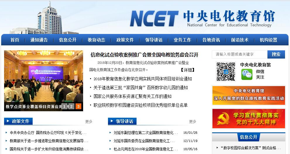 1978年,经邓小平等党和国家领导人同意、国务院批准,中央电化教育馆正式成立,成为教育部直属的事业单位。中央电化教育馆重点为基础教育和职业教育服务,其主要职责:开发多种媒体教材,开展多种媒体教材的研究、交流和服务工作;开发教育教学资源,建设教育教学信息资源;承担国家中小学现代远程教育工程项目的人员培训,资源的整合、集成、发送,科研支撑与应用指导,技术支持与服务等工作;组织开展学校教育技术、信息技术教育理论与应用的研究与实验,开发、转化和推广相关的研究成果;开展各种教育技术的培训工作;主办《中国电化教育》期刊;开展国际学术交流,承办教育部委托的国际合作项目;承担全国中小学教师教育技术能力建设计划项目办公室、中国教育技术协会秘书处及中小学专业委员会秘书处、期刊专业委员会秘书处工作。2004年,经中央编制委员会办公室批准,教育部基础教育资源中心正式成立,与中央电化教育馆合署办公。其主要职责:承担基础教育资源建设的规划和协调工作;收集、发布基础教育资源需求信息;组织基础教育资源征集、引进、开发和整合;建立基于中国教育卫星宽带多媒体传输网的专项资源管理和服务平台,负责基础教育资源发送、技术支持、用户管理和反馈信息收集;承担国家基础教育资源库及资源服务网站的管理工作;组织基础教育资源的研究、评价、推荐和交流;开展教育部授权和委托的其它有关工作。在教育部的领导下,中央电化教育馆和教育部基础教育资源中心已经形成了一支专业化的人才队伍,全体员工奋发努力、开拓进取,团结全国电教系统共同奋斗,以农村中小学现代远程教育工程和全国中小学教师教育技术能力建设计划实施为重点,以资源建设与服务为中心,在远程教育工程项目实施、教育信息资源建设、教育技术培训与应用指导、教育技术研究与实验、技术支持与服务、国际交流与合作等方面,发挥了重要作用,取得了显著成绩,已经成为我国基础教育信息化建设中的重要支撑,教育信息化建设中的一支重要力量。中央电化教育馆和教育部基础教育资源中心将以科学发展观为指导,进一步加强自身能力建设,更好地发挥全国电教馆系统的整体优势,开拓创新,扎实工作,为全面实施素质教育,促进义务教育均衡发展,推进基础教育信息化支持服务体系建设,提升教育现代化水平,建设全民学习、终身学习的学习型社会做出应有的贡献。