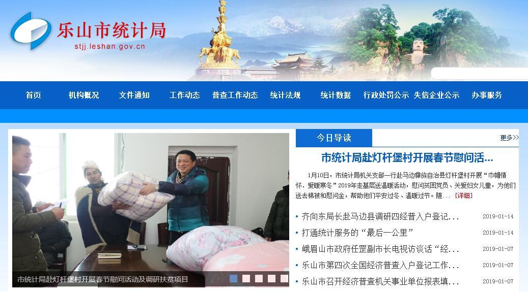 乐山市统计局主要职责:(一)贯彻执行国家统计工作的方针、政策和法律、法规以及统计制度、统计标准;建立健全统计信用体系,组织开展统计执法检查,查处统计违法行为;草拟全市统计规范性文件,制定全市统计政策、规范及统计制度、统计标准;组织领导和协调全市统计工作。负责县(市、区)、市级部门统计工作目标考核和全社会统计管理。(二)建立健全全市国民经济核算体系,组织实施全市国民经济核算,整理提供国民经济核算资料,指导、监督县(市、区)国民经济核算工作。(三)组织实施全市农林牧渔业、工业、建筑业、批发和零售业、住宿和餐饮业、房地产业等国民经济行业以及能源、投资、人口、收入、科技、社会发展基本情况、环境基本状况等领域的统计调查,建立全市经济社会发展监测评价制度及指标体系,对重点区域和重要领域实施监测评价,牵头综合整理和提供全市基本统计资料。(四)组织实施全市人口、经济、农业普查、重大国情国力专项调查、投入产出调查以及社情民意调查。(五)建立健全全市统计数据质量审核、监控和评估制度,依法对县(市、区)、市级部门重要统计数据进行审核、监控和评估,组织指导统计基层基础建设。(六)对全市国民经济、社会发展、科技进步和资源环境等情况进行统计分析和预测,定期发布全市经济社会发展情况统计信息,提供统计咨询建议和统计信息服务。(七)会同有关部门组织管理全市统计专业资格考试、职务评聘和从业资格认定工作,指导全市统计专业人才队伍建设,开展统计交流与合作。(八)负责全市统计信息化管理,建立和管理全市基本单位名录库,组织制定统计数据库和网络的基本标准和运行规则,建立全市统计数据库系统、统计信息化自动化系统和市级部门统计信息共享制度,指导地方统计信息化建设。(九)积极推进生态文明建设和绿色发展统计工作。(十)承办市政府交办的其他事项。