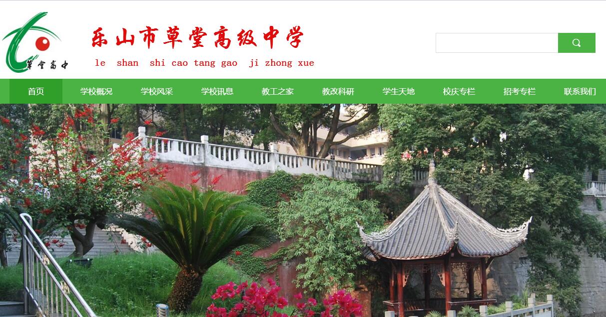 从1986年创建至今,已经走过了二十八个春秋。那笼青揽翠的雅致校园还飘拂着“诗圣”杜甫的一袭长袖;那流光溢彩的海棠香苑还回荡着少年沫若的低吟高歌。她更优秀,豆蔻年华的她已似一只轻舟,云帆直挂,争渡三江;又似一颗明珠,熠熠生辉,光耀嘉州。今天,草堂高中在李火根校长的带领下,继往开来,与时俱进。学校以“从严治校,争创一流,着眼素质,办出特色”为宗旨,以“四坚持四增强”(坚持带头作用,增强服务意识;坚持集体领导,增强民主法制意识;坚持组织原则,增强核心领导意识;坚持深入实际,增强科学决策意识)为基准点,树立廉洁奉公,勤政为民,身先士卒、务实高效的良好形象。以建设高质量、高品位、高效益,有特色的精品优质高中为目标,励精图治,锐意进取,在办学条件、管理水平、办学质量上不断迈向新的台阶。现已建成为四川省文明单位,四川省校风示范学校,四川省艺术教育特色学校,四川省体育传统项目(足球)先进学校,全国群众体育先进集体,乐山市素质教育示范学校,乐山市政府办学督导评估优秀学校,乐山市普教系统唯一的先进集体。校拥有一支师德高、教艺精、富有教改探索精神的师资队伍。具有中高级职称的教师占87%。学校艺术氛围浓厚,建有学生书画艺术长廊、艺术作品展览室、规范的图书阅览室、音乐舞蹈活动室、器乐活动室、美术活动室、专业美术教室、书法研修室。学校还于2004年成立了乐山唯一的一只拳击队。在四川省第九届全运会上面拿到佳绩,获得市政府和各界的盛赞。为热爱体育运动的学子拓展兴趣。学校坚持以学生为主体的教学模式,注重学生健全人格的塑造与品德修养,积极探索课堂结构改革,率先探索在普通高中实行美术特长教育,全面推进素质教育。2000年和2001年实现了乐山市高考文科状元两连冠,2002年美术班学生考取中央美术学院填补了乐山市近几十年来的空白。2003年美术班又有学生考上了中央美术学院。学校努力营造“踏踏实实做事,友友爱爱共事,同心同德创业,快快乐乐生活”学校软环境。建设和发扬“爱校敬业的主人翁精神,埋头苦干的老黄牛精神,崇尚和谐的大团结精神,追求卓越的争一流精神”,为创建省级示范性高中奠定了坚实的思想、物质基础。办好教育让学生成才,让家长放心,让人民满意。“一切为了学生,为了学生的一切,为了一切学生,让每个学生都成功”,这是草堂高中全体教职工向社会的郑重承诺。