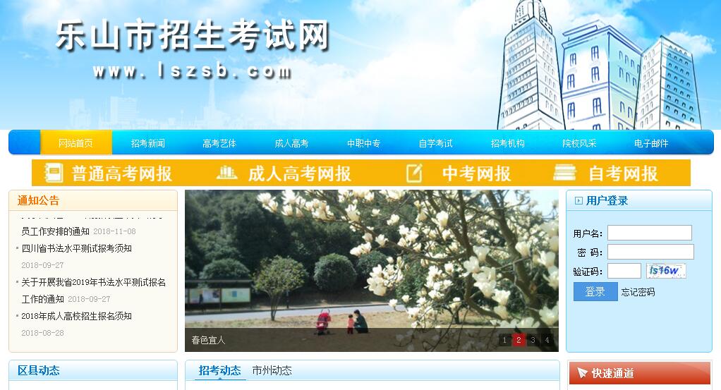 乐山市招生考试网由乐山市大中专招生委员会办公室主办。