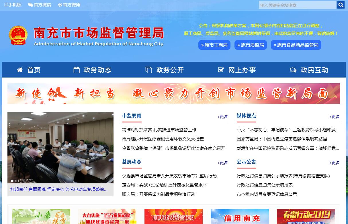 | 网站简介: 南充市市场监督管理局是南充市机构改革组建的新部门,为南充市人民政府工作部门。 |
