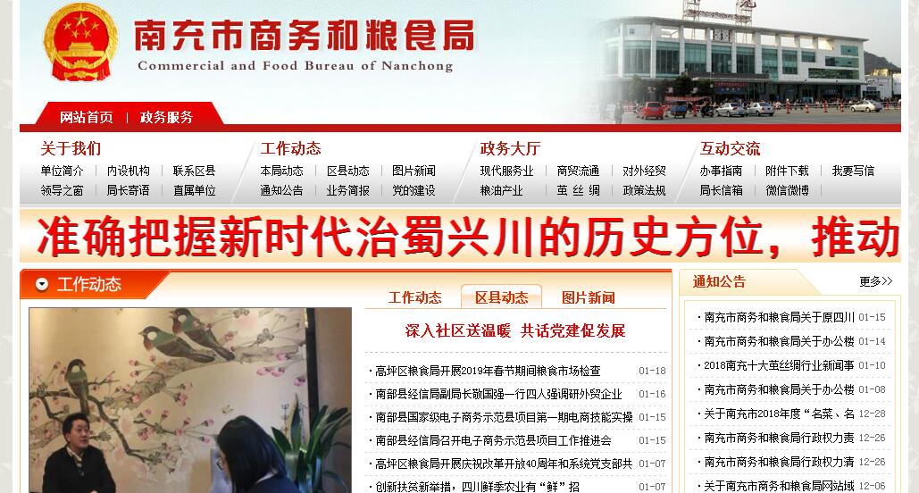 根据《中共南充市委南充市人民政府关于印发〈南充市人民政府机构改革方案〉和〈关于南充市人民政府机构改革方案的实施意见〉的通知》(南委〔2010〕65号),设立南充市商务和粮食局(简称市商务粮食局),为市政府工作部门。南充市商务和粮食局主要职责:(一)贯彻执行内外贸易、外商投资、国际经济合作、粮食流通和储备粮管理工作有关法律、法规、规章和方针、政策;起草我市内外贸易、外商投资、国际经济合作、粮食流通和储备粮管理的相关政策并监督执行;拟订全市商务和粮食发展的中长期规划、年度计划并组织实施;提出发展现代粮食流通产业战略建议;负责商务和粮食行政调解、行政复议和行政应诉工作。(二)承担全市服务业发展工作中组织实施的协调职责,推进流通产业结构调整,加快第三方物流发展,指导流通企业改革、商贸服务业和社区商业发展,提出促进商贸企业发展的政策建议,推动流通标准化和连锁经营、商业特许经营、物流配送、电子商务等现代流通方式的发展。(三)研究提出引导国内外资金投向市场体系建设的政策,编制大宗产品批发市场规划,指导城市商业网点规划和商业体系建设工作,推进农村市场体系建设,组织实施农村现代流通网络工程,促进城乡市场一体化发展。(四)承担牵头协调全市整顿和规范市场经济秩序工作的责任,拟订规范市场运行和流通秩序的政策;推动商务领域信用建设,建立市场诚信公共服务平台;负责本行政区域内商业特许经营活动、特殊流通行业、酒类流通的监督管理和易制毒化学品进出口的监督检查以及美容美发业的指导、协调、监督和管理。(五)组织实施重要消费品市场调控和重要生产资料流通管理的责任,负责建立健全生活必需品市场供应应急管理机制,监测分析市场运行、商品供求状况,调查分析商品价格信息,进行预测预警和信息引导,按分工负责重要消费品储备管理和市场调控工作。(六)拟订促进转变外贸增长方式的政策措施,指导对外贸易行业执行国家进出口商品、加工贸易管理办法和进出口管理商品、技术目录,组织实施重要工业品、原材料和重要农产品进出口总量计划,会同有关部门协调大宗进出口商品的业务工作,指导贸易促进活动和外贸促进体系建设。(七)依法监督技术引进、设备进口、国家限制出口技术的工作,推进进出口贸易标准化工作,牵头负责发展服务贸易的相关工作;负责本本区域内技术进出口情况的统计工作。(八)拟订应对经济全球化、区域经济合作的对策措施,加强与自由贸易区、港澳台地区的商贸合作,推进贸易和投资便利化。(九)承担组织协调反倾销、反补贴、保障措施和技术性贸易壁垒等与进出口公平贸易相关工作;建立进出口公平贸易预警机制,牵头开展对外贸易调查、产业损害调查和经营者集中行为的反垄断审查,指导协调产业安全应对、企业在国外的反垄断应诉工作和国外对我市出口商品的反倾销、反补贴、保障措施的应诉工作;做好涉及本地区企业反倾销案件信息统计工作,建立信息报送系统,评估国外反倾销对本地区出口贸易的影响。(十)指导全市外商投资促进和管理工作,参与制订外商投资政策和改革方案并组织实施,统计分析全市外商投资情况,依法监督检查外商投资企业执行有关法律法规规章、合同章程的情况并协调解决有关问题。(十一)负责全市对外经济合作工作,拟订并执行对外经济合作政策,依法管理和监督对外承包工程、对外劳务合作和出境就业等,承担境外投资管理的责任,组织管理我市承担的国家对外援助任务,管理多双边对我市的无偿援助和赠款(不含财政合作项目下外国政府对我市赠款)等发展合作业务。(十二)管理我市赴境外举办的各种商品交易和经贸推介活动,指导监督管理以南充市名义在境内举办的各种商贸交易会、展览会、展销会等活动。(十三)规划全市商务和粮食系统电子政务、公共商务信息服务体系建设并组织实施,推动电子商务发展。(十四)承担全市粮食预警监测和应急责任,负责全市粮食宏观调控具体工作,组织指导全市粮食系统统计工作,研究提出全市粮食宏观调控、总量平衡以及粮食流通的中长期规划的建议,拟订全市粮食最低收购价执行预案并监督执行,管理社会粮食流通,保障军队等政策性粮食供应。负责全市粮食余缺调剂,指导市内粮食销售工作,开展粮食流通的合作交流。(十五)承担市级储备粮行政管理责任,指导全市粮食储备体系建设;提出地方储备粮总规模及市级储备粮的总体布局和收储、轮换、动用计划建议并组织实施;制定市级储备粮管理技术规范并监督执行;监督检查市级储备粮库存数量、质量和储存安全;协助上级粮食行政管理部门对本行政区域内的代储企业、中央储备粮、省级储备粮及国家其他政策性临时储存粮进行监督检查。(十六)贯彻实施国家粮食质量标准并监督执行,负责全市粮食收购、储存环节和政策性用粮质量安全,负责库存原粮卫生监督管理,指导粮食行业安全生产和抢险救灾,指导全市农村科学储粮工作。(十七)拟订粮食流通产业发展规划,提出促进粮食流通产业发展的政策建议并督促落实,指导、协调全市粮食流通基础设施建设,管理粮食流通设施建设项目;制订全市粮食仓储、加工和物流体系建设规划并组织实施;拟订全市粮食市场体系发展规划,指导粮食批发