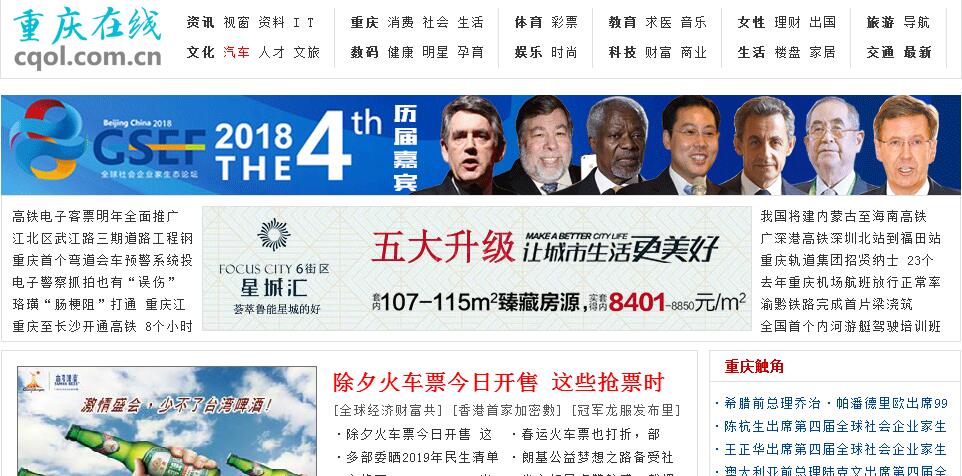 重庆在线www.cqol.com.cn是重庆资讯门户网站,是城市网集团2010年网站联盟重点打造的网站之一,通过资源的运营和资源整合,现在在网站流量\网站广告运营\合作客户回报等方面已经取得同业公司的绝对领先;城市网的介绍 “都市生活搜索,城市时尚门户”。城市网是城市网科技有限公司运营的网站,城市网cityy.com源于1997年注册的xue.net,cityy.com深圳公司2005年获得政府授于的牌照,原主营城市网络门户广告;为了响应深圳“文化立市”,“科技与文化相结合”的号召,开始自主运营拥有自主知识产权的城市网cityy.com。城市网以城市生活实用信息服务及城市生活向导为基础,主要提供生活预定、团购、分类、黄页、教育等服务。城市网集团,是深圳同业公司注册时间最早的公司之一,公司注册资本在同业网站中最多,公司服务器托管于电信网通等三线机房中,同时运营团队充实了原深圳热线\奥一网\鸿波网\深圳新闻网等深圳知名公司运营团队;城市网的企业文化:a.城市网的愿景。城市网的愿景是“有笑、有爱、有梦,向善、向上、向前”,从这些对仗工整的三段式理念中我们可感觉到青春与活力、乐观与朝气、气魄与决心、理想与追求。在深圳高速高效、高强高压高负何外围大环境下,城市网员工源自内心的感觉到因为有笑生活上是幸运而幸福的,因为有爱工作上是充满着人缘与机缘的,因为有梦物质上是富有而富足的。b.城市网的方法论。城市网的方法论是“优道、优术、优势,求实、求是、求美”,从城市网公司的方法论能真切的感受到这家公司及这个城市对知识与理论的重视、对实践和探索的肯定、对高度和团队的独特理解,求实是一种深圳精神,求是一种理性指导,求美是一种人文追求体现有正是“时间就是金钱、效率就是生命”“空谈误国、实干兴邦”的创业精神,城市网正有了这种创业精神方法论的指导,旗下诸多品牌获得诸多媒体的好评与荣誉。重庆在线通过几倍于同业公司的人力\资本\品牌投入为公司在行业处在领先地位奠定了坚实的基础,同时也为客户的实效和品牌推广作了最有效的保障。
