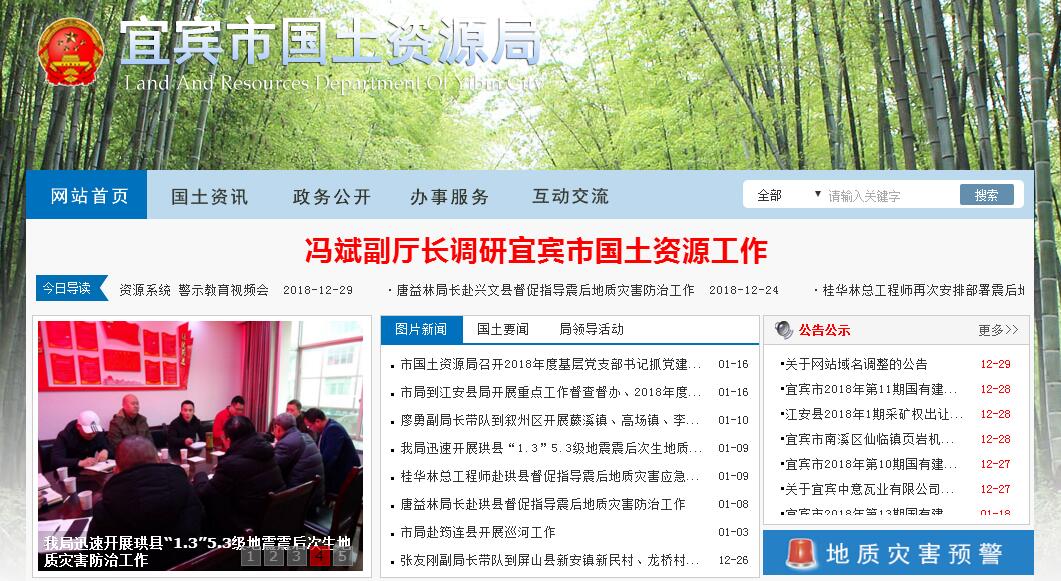 宜宾市国土资源局主要职责:(一)统一管理全市土地、矿产等自然资源。部署全市国土资源工作并实施指导、检查、监督。(二)贯彻执行国家和省、市以及上级国土资源部门关于土地、矿产等自然资源方面的法律、法规和方针、政策;负责起草全市有关土地资源、矿产资源等自然资源管理的规范性文件并组织实施和监督;依法负责有关行政复议;监督检查全市各级国土资源主管部门行政执法和土地、矿产资源规划执行情况;保护土地、矿产资源所有者和使用者的合法权益;查处土地、矿产违法案件;组织贯彻实施土地资源、矿产资源管理的技术规范、规程、标准和办法;负责土地资源、矿产资源的国情、国策及有关法律、法规、政策的宣传教育及普法教育。(三)组织编制和实施国土规划、土地利用总体规划、基本农田保护规划、土地开发规划、土地复垦规划、土地整理规划、矿产资源保护与合理利用规划、地质灾害防治和地质遗迹保护规划和土地利用年度计划;指导、审核、报批土地利用总体规划、土地专项规划和土地利用年度计划;参与城市规划的审核工作;对建设项目用地进行预审。(四)贯彻实施耕地特殊保护和耕地开发、整理政策;实施土地用途管制;组织基本农田保护;负责土地开发、土地复垦、土地整理和土地资源储备的管理、监督和实施工作。(五)主管全市非农业建设的征地工作;组织执行各类建设用地定额指标;承担由市人民政府和省以上人民政府审批的各类用地的审查、报批工作;按规定拟定、审核、报批农用地转用方案、土地征用方案、补充耕地方案和供地方案;按规定负责耕地开垦资、土地有偿使用费、土地闲置费等有关规费的征收和管理,组织有关预算的执行;负责组织政府土地收购储备及有关开发整理工作。(六)依法管理土地资产,负责土地市场的建设和管理。依法组织实施国有土地使用权划拨、出让、租赁、作价出资、作价入股、转让、抵押,并对全市有关工作实施指导、监督、检查;对企业土地资产处置实施管理监督;负责农村集体非农土地的利用、流转管理工作;负责组织、指导全市基准地价、标定地价的编制,对地价评估结果进行备案管理;依法确认土地使用权价格。(七)统一管理城乡地籍地政工作,实施规范化地籍管理、组织土地资源调查与评价、地籍调查、土地变更统计、土地动态监测和地籍信息系统建设;依法负责土地确权登记、发证,承办并组织调处土地权属纠纷等工作。(八)贯彻实施矿产资源管理法律、法规,依法保护和利用矿产资源;承担矿产资源储量管理工作,负责地质资料汇总;实施地勘项目管理;依法确认矿产权属,按规定进行采矿权审批、登记、发证和采矿权转让审批登记;承办并组织调处矿产权属纠纷;依法组织矿产资源开发、利用与保护并实施监督管理;按规定管理矿产资源补偿费的征收和使用。(九)组织监测、防治地质灾害和保护地质遗迹;组织编制和实施滑坡、崩塌、泥石流、地面沉降与塌陷等地质灾害防治和地质遗迹保护规划并实施监督检查;依法管理水文地质、工程地质、环境地质的评价工作;,审核地质环境影响报告;监测、监督、防止地下水的过量开采与污染;组织、协调重大地质灾害防治;依法保护地质环境;组织认定或审查上报具有重要价值的古生物化石的产地、标准;依法组织地热、矿泉水的鉴定和年度审查工作。(十)负责全市测绘行政管理。(十一)对县国土资源主管部门实行业务指导;按照规定对各县国土资源主管部门的领导干部实行协管;负责全市国土资源系统的科学技术、信息和宣传教育;指导、实施国土资源系统人员培训;指导全市国土资源系统的精神文明建设、党风廉政建设和队伍建设;负责局机关及直属单位的人事、劳资、机构、人员编制管理。(十二)安排并监督国家和省、市财政拨给的各项有关经费的使用;对系统各项行政事业性收费的征收使用实施管理和监督;指导系统财务会计工作并实施监督。(十三)承办市人民政府交办的其他事项。