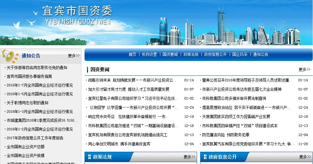 据《中共宜宾市委宜宾市人民政府关于印发〈宜宾市人民政府机构改革方案〉和〈关于宜宾市人民政府机构改革方案的实施意见〉的通知》(宜委发〔2010〕15号),设立宜宾市政府国有资产监督管理委员会(简称市国资委),为市政府工作部门。中共宜宾市国有资产监督管理委员会委员会(简称市国资委党委),履行市委规定的职责。其主要职责:(一)根据市政府授权,依照《中华人民共和国公司法》、《中华人民共和国企业国有资产法》等法律和行政法规履行出资人职责,监管市属企业的国有资产,加强国有资产的管理工作。(二)制定或拟订国有资产管理的有关制度,依法对区县国有资产管理进行指导。(三)承担监督所监管企业国有资产保值增值的责任,建立和完善国有资产保值增值指标体系,制定考核标准,通过统计、稽核对所监管企业国有资产的保值增值情况进行监管。负责所监管企业工资分配管理工作,制定所监管企业负责人收入分配政策并组织实施。(四)指导推进国有企业改革和重组,推进国有企业的现代企业制度建设,完善公司治理结构,推动国有经济布局和结构的调整。(五)通过法定程序对所监管企业负责人进行任免、考核并根据其经营业绩进行奖惩,建立符合社会主义市场经济体制和现代企业制度要求的选人、用人机制,完善经营者激励和约束制度。(六)参与制定国有资本经营预算有关管理制度,提出所监管企业年度国有资本经营预算建议草案,组织和监督所监管企业国有资本经营预算的执行,编报所监管企业年度国有资本经营决算草案,负责组织所监管企业上缴国有资本收益。(七)按照有关法律法规的规定,代表市政府向所监管企业派出董事、监事会。负责监事会的日常管理工作。(八)根据市委授权,负责部分国有资产在区县的重点国有企业负责人的任免等管理工作。(九)协调中央、省属及外地在宜国有企业改革发展中与地方相关的事宜。(十)承办市委、市政府交办的其他事项。
