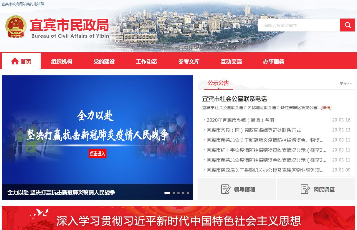 宜宾市民政局主要职责:(一)贯彻执行国家民政工作的方针、政策和法律、法规,拟订全市民政事业发展规划和工作计划,并组织实施和监督检查。(二)承担依法对社会团体和民办非企业单位的登记管理和监察责任。(三)负责各类优抚对象的优待、抚恤、补助和国家机关工作人员伤亡抚恤工作,负责烈士褒扬工作,组织和指导全市拥军优属工作。(四)负责退役士兵、复员干部、移交地方安置的军队离退休干部和军队无军籍退休退职职工的接收安置工作,指导退役士兵职业技能培训和就业工作。(五)负责组织、协调全市救灾工作,组织自然灾害救助应急体系建设,负责组织核查、上报并统一发布灾情,管理、分配救灾款物并监督使用,组织、指导救灾捐赠,组织实施减灾工作。(六)牵头拟订全市社会救助规划、政策和标准并监督实施,健全城乡社会救助体系,负责城乡居民最低生活保障、医疗救助、临时救助和生活无着人员救助工作。(七)负责全市乡镇以上行政区域的设立、撤销、调整、更名和界线变更及政府驻地迁移以及地名命名、更名的审核上报工作。组织、指导全市行政区域界线的勘定和管理工作,调处区县边界争议,规范地名标志的设置和管理。(八)提出加强和改进基层政权建设的意见和建议,指导社区服务体系建设。指导村(居)民委员会开展民主选举、民主决策、民主管理和民主监督工作,推动基层民主政治建设。(九)拟订并监督实施全市社会福利事业发展规划,贯彻落实促进慈善事业发展的政策。组织、指导社会捐助工作,指导老年人、孤儿和残疾人等特殊群体权益保障工作。负责全市福利企业资格认定。(十)指导婚姻、殡葬、儿童收养和救助管理工作,负责推进婚俗和殡葬改革,协调毗邻市州救助工作。(十一)负责落实社会工作发展规划、政策和职业规范,推进社会工作人才队伍建设和相关志愿者队伍建设。(十二)指导、监督民政事业经费的使用和管理,负责民政统计管理工作。(十三)承担市政府公布的有关行政审批事项。(十四)承办市政府交办的其他事项。