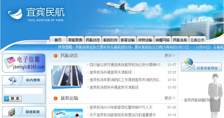 宜宾机场位于宜宾市西北方向8公里的翠屏区菜坝镇,始建于抗战时期,20世纪90年代初为促进对外开放和经济发展架起空中桥梁,由原宜宾地区行署投资在驻军陆航直升机训练机场基础上,于1991年、1993年分两次扩建而成,为军民合用机场。机场等级4C级,I类精密进近仪表着陆系统,跑道长2200米、宽45米,停机位4个,候机楼总面积4700平方米,值机柜台4个,安检通道2条。2008年5月成立宜宾机场消防站,配备一台重型泡沫消防车、一台中型泡沫消防车、一台火场照明抢险车等消防保障设备;2009年机场安全专项整治ⅠⅡⅢ类项目全面完工;2011年顺利通过民航西南地区管理局、民航四川监管局的安全审计复查;2011年8月新增宜宾机场跑道中线灯。自1992年12月16日通航以来,宜宾机场现已安全运行26年,搭建起以宜宾为中心北上北京、太原、西安;南下广州、深圳、厦门、三亚、贵阳;东至南京、青岛、上海、杭州、武汉、长沙;西达拉萨、昆明、丽江共计17个通航城市航线航班架构。曾顺利完成江泽民、胡锦涛、李鹏、温家宝、曾培炎、贾庆林、张德江等党和国家领导人的专机保障任务。旅客吞吐量由1993年的2.4万人次发展到2017年的82.79万人次。机场的管理机构为宜宾民航管理处(原名宜宾民航机场管理处,于1993年更名),是宜宾市政府下属的正县级事业单位,实行企业化管理,业务由民航西南地区管理局、民航四川监管局实施指导和监管。内部实行处、科、室三级管理制,设有二级职能部门13个,目前员工176人。