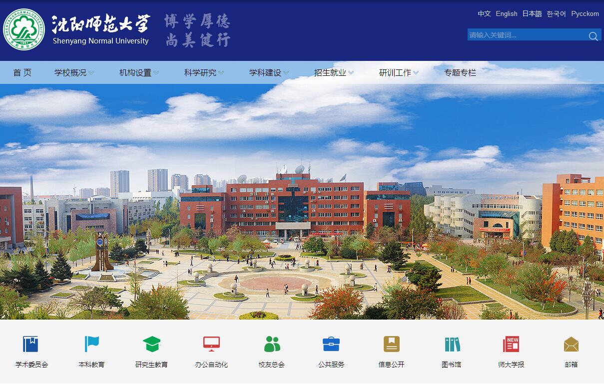 沈阳师范大学隶属于辽宁省人民政府,是一所涵盖哲学、经济学、法学、教育学、文学、理学、工学、管理学、艺术学等九大门类的多科性大学。学校始建于1951年,其前身为东北教育学院。1953年,更名为沈阳师范学院,是当时东北地区创办最早的两所本科师范院校之一。1965年更名为辽宁第一师范学院。1978年恢复沈阳师范学院校名。2002年省政府决定并经教育部批准,沈阳师范学院与辽宁教育学院合并组建沈阳师范大学。学校占地面积1890余亩,建筑面积80余万平方米。学校共有全日制本科生20000余人,硕士研究生3300余人,长短期留学生1000余人。现已为国家培养了大量德才兼备的师资及各类人才,为东北特别是辽宁的教育事业做出了重要贡献。辽宁省基础教育教研培训中心、辽宁教育行政学院、辽宁电化教育馆设在我校。学校现有26个二级学院和23个校属馆部中心研究所及附属机构。拥有我国在中东地区为数不多的两所孔子学院—黎巴嫩贝鲁特圣约瑟夫大学孔子学院和约旦安曼TAG孔子学院。现有辽宁省高等学校一流学科1个、省级重大科技平台1个、工程(技术)研究中心5个、重点实验室11个、重点研究基地26个、创新团队8个。硕士学位一级学科授权点24个,专业学位授权点11个,省研究生教育创新计划项目12项。本科专业78个,国家级特色专业4个、国家级综合改革试点专业1个、国家级精品开放课程4门、国家级教学名师1人、国家级实验教学示范中心1个、大学生校外实践教育基地2个、卓越法律人才培养基地1个、卓越幼儿教师培训计划项目1项。省级优势特色专业5个;省级特色(示范性)专业9个、省级综合改革试点专业6个、省级重点支持专业2个、省级工程人才培养模式改革试点专业3个、省级创新创业教育改革试点专业1个、省级向应用型转变示范专业7个、省级大学生创业项目选育基地1个、省级大学生校外实践教育基地12个、省级创新团队8个、省级教学团队8个、省级实验教学示范中12个、省级精品开放课程79门。是普通高等学校推荐优秀应届本科毕业生免试攻读硕士学位研究生单位,教育部首批开展专业学位研究生教育综合改革试点单位,是中国政府和孔子学院奖学金留学生接受单位,首批省级深化创新创业教育改革示范高校,商务部援外培训承办基地、教育部中小学教师国家级培训基地、文化部中国非物质文化遗产研修研习培训基地、辽宁省大学生创新创业实践教育基地。学校拥有一支职称结构优化、学历层次较高、科研能力较强、年龄结构合理、高素质、高水平的师资队伍。现有“长江学者特聘教授”2人,国务院政府特殊津贴专家12人,辽宁省特聘教授10人,专任教师1427人,其中正高级专业技术人员232人、副高级专业技术人员591人。目前,学校深入学习贯彻落实党的十九大精神,坚持以习近平新时代中国特色社会主义思想为指导,以国家建设“两个一流”的奋斗目标为引领,以创新创业立德树人为根本,以打造优势特色学科与专业为核心,以服务区域经济社会发展需求为导向,以综合改革和体制机制创新为动力,坚定不移地走优势特色发展、创新发展、内涵发展之路,努力提高办学质量与水平,全面提升学校办学的核心竞争力、自主创新力、社会影响力和国际竞争力,为国家和地方经济社会发展提供强有力的人才支撑和智力支持。