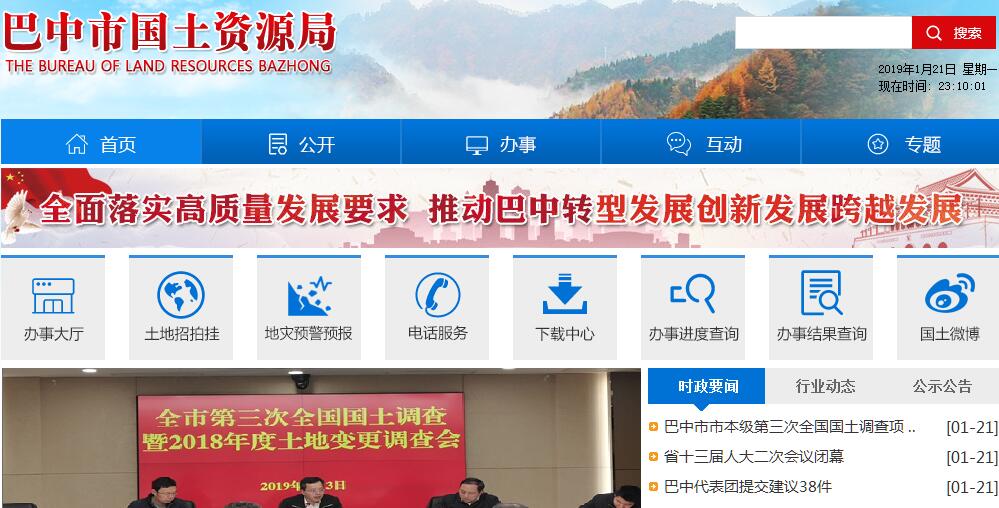 根据中共四川省委办公厅、四川省人民政府办公厅《关于印发<巴中市人民政府机构改革方案>的通知》(川委厅〔2010〕41号),设立巴中市国土资源局(简称市国土局),为市政府工作部门。其主要职责:(一)贯彻执行国家关于土地、矿产资源方面的法律、法规和方针、政策;负责拟订本市土地资源、矿产资源等自然资源管理的规范性文件;研究拟订国土资源规划、管理、保护与合理利用土地资源、矿产资源的方案。(二)拟订和实施土地利用总体规划,专项规划和土地利用年度计划;参与城市总体规划的审核;预审建设项目用地;指导、审核县(区)土地利用总体规划;组织矿产资源的调查评价,编制矿产资源保护与合理利用规划、地质勘查规划、地质灾害防治和地质遗迹保护规划。(三)负责监督检查全市各级国土资源主管部门行政执法和土地、矿产资源规划执行情况;保护土地、矿产资源所有者和使用者的合法权益,承办并组织调处土地、矿产权属纠纷;查处土地、矿产违法案件。(四)贯彻实施耕地特殊保护和鼓励耕地开发、整理政策,实施土地用途管制,组织基本农田保护,负责未利用土地开发、土地整理、土地复垦和土地储备的管理和监督工作,确保全市耕地占补平衡,稳定耕地面积。(五)拟订并按规划组织实施土地使用权出让、租赁、作价出资、转让交易和政府收购管理办法;按规定审查、批准农用地转用方案、土地征用方案、补充耕地方案和供地方案;指导乡(镇)、村用地管理和农村集体非农土地使用权的流转管理工作。(六)负责实施地籍管理办法,组织土地资源调查与评价、地籍调查、土地统计和动态监测;依法负责权限内的土地确权、城乡地籍、土地定级、土地登记、发证等工作。(七)指导基准地价、标定地价评测;确认土地使用权价格;承办市人民政府、省人民政府和国务院审批的各类用地的审查、报批工作;按规定负责土地补偿费、安置补助费、耕地开垦费、土地有偿使用费、土地闲置费等的征管,组织有关预算的执行。(八)承担依法管理矿产资源采矿权、探矿权的审批或审核和登记发证;依法审批和组织实施对外合作区块;承担矿产资源储量管理工作,管理地质资料汇交;依法实施地质勘查行业管理,审查确定地质勘查单位的资格,管理地勘成果;按规定管理矿产资源补偿费的征收和使用;确认采矿权评估结果。(九)组织监测、防治地质灾害和保护地质遗迹;依法管理水文地质、工程地质、环境地质勘查和评价工作;监测、监督防止地下水的过量开采与污染,审核地质环境影响评价报告,依法保护地质环境;组织认定或审查上报具有重要价值的古生物化石产地、标准地质剖面等地质遗迹保护区,按规定审批地质遗迹自然保护区的开发;依法组织地热、矿泉水的鉴定和年度审理工作。(十)负责安排并监督检查国家财政和省、市财政拨给的有关经费的使用情况。(十一)参与协调土地和矿产资源工作的对外合作与交流。(十二)承办市政府交办的其他事项。