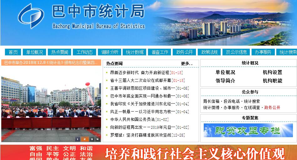 巴中市统计局是政府主管全市统计和国民经济核算工作的市政府工作部门,其主要职责是:一、贯彻执行国家有关统计工作的法律、法规,草拟全市统计工作的规章、制度、统计现代化建设规划和统计调查计划,组织领导和监督检查全市各县区、部门的统计和国民经济核算工作,监督检查统计法律、法规的实施。负责组织、协调本行政区域内的统计登记。二、建立健全全市国民经济核算体系和统计指标体系,建立和管理全市基本统计报表,制定全市统计标准,审定部门统计标准,管理统计调查项目,审批调查方案。三、组织实施全市重大国情国力普查和专项调查,汇总、整理全市基本统计资料,对国民经济、科技进步和社会发展情况进行统计分析、预测和监督,组织非公有制经济调查。向市委、政府以及有关部门提供统计信息和咨询建议。四、统一核定、管理、发布全市的基本统计资料,定期向社会公众发布全市性国民经济和社会发展情况的统计信息。五、建立健全和管理全市统计信息自动化建设系统和统计数据库体系,制定统计数据库网络的基本标准和运行规定。六、统一管理全市县区以上政府统计部门的统计事业费;组织管理全市统计专业资格考试和职称评定、统计系统公务员业务培训、统计专业人员岗位培训和继续教育工作。七、承办市政府交办的其他事项。