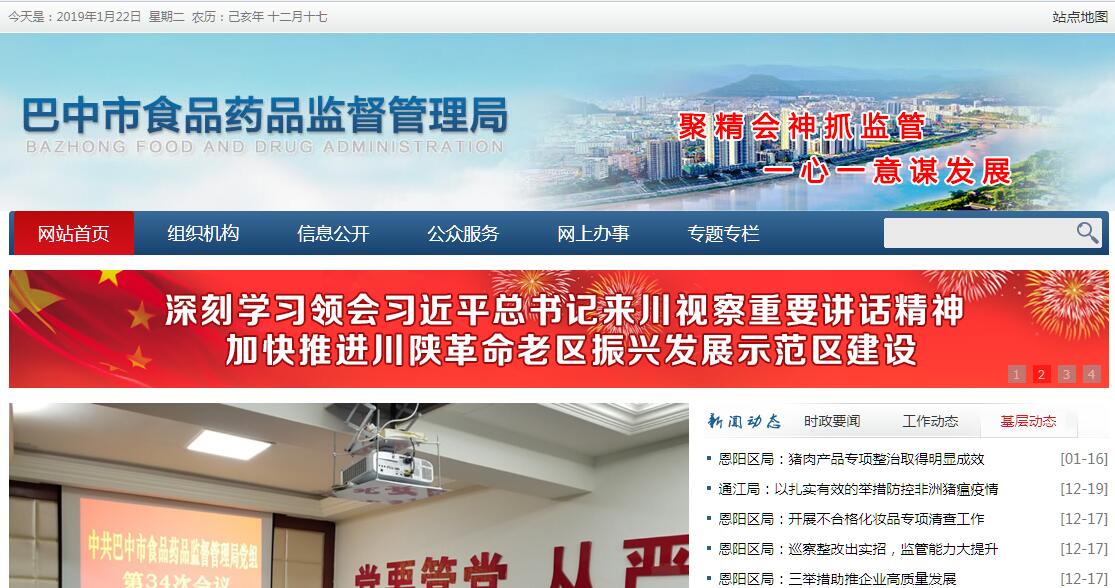 巴中市食品药品监督管理局主要职责:(一)贯彻执行国家有关食品(含食品添加剂、保健食品,下同)安全、药品(含中药,下同)、医疗器械、化妆品监督管理的方针政策和法律法规;负责本部门依法行政工作,落实行政执法责任制;制定全市食品安全、药品、医疗器械、化妆品监督管理的政策规划,推动建立落实食品安全企业主体责任、全市各级人民政府分级负责的机制,建立食品药品重大信息直报制度,并组织实施和监督检查,着力防范区域性、系统性食品药品安全风险。(二)负责全市食品行政许可的监督实施。建立食品安全隐患排查治理机制,制定全市食品安全检查年度计划、重大整顿治理方案并组织落实。负责建立食品安全信息统一公布制度,公布重大食品安全信息。参与制定食品安全风险监测计划、食品安全地方标准,根据食品安全风险监测计划开展食品安全风险监测工作。(三)监督实施全市药品和医疗器械的标准、分类管理制度,监督实施药品和医疗器械的研制、生产、经营、使用质量等管理规范。建立药品不良反应、医疗器械不良事件监测体系,并开展监测和处置工作。参与制定化妆品监督管理办法并监督实施。参与制定我市基本药物目录内药品生产的鼓励扶持政策,配合实施国家基本药物制度。(四)组织实施食品、药品、医疗器械、化妆品监督管理的稽查制度,组织查处重大违法行为。建立问题食品药品召回和处置制度并监督实施。依法审核食品、药品、医疗器械、化妆品广告内容。(五)负责食品药品安全事故应急体系建设,组织和指导食品药品安全事故应急处置和调查处理工作,监督事故查处落实情况。(六)负责制定食品药品安全科技发展规划并组织实施,建立食品药品安全监测预警信息平台、食品药品投诉举报和指挥处置系统,推动食品药品检验检测体系、电子监管追溯体系和信息化建设。(七)负责开展食品药品安全宣传、教育培训、对外交流与合作。推进诚信体系建设,落实食品药品安全“黑名单”制度。(八)指导县(区)食品药品监督管理工作,规范行政执法行为,完善行政执法与刑事司法衔接机制。(九)承担市食品安全委员会日常工作。负责食品安全监督管理综合协调,推动健全协调联动机制。督促检查县(区)人民政府履行食品安全监督管理职责并负责考核评价。(十)贯彻落实国家、省、市医药产业有关方针政策,牵头组织实施全市巴药产业发展规划,督促检查市级相关部门和县(区)人民政府履职情况并负责考核评价。(十一)承办市政府以及市食品安全委员会交办的其他事项。