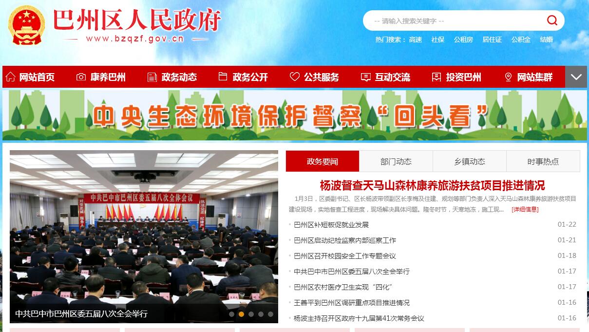 | 网站简介: 巴州区,隶属于四川省巴中市,地处四川省东北部,大巴山南麓,介于东经106°21′~107°7′,北纬31°31′~32°4′之间,东接通江县、平昌县,南邻南充市仪陇县,西连恩阳区,北界南江县。巴州区幅员面积1407平方公里,辖9个街道、15个镇、8个乡,2017年,户籍人口75.2万;2016年,巴州区地区生产总值实现127.63亿元,增长8.1%;属盆北低山区,地势北高南低‘;属亚热带湿润性季风气候,年平均气温17℃。巴州区素为川北重镇,交通要冲。自东汉以来为历代州、郡、县治地。民国二十二年(1933年)至民国二十四年(1935年),川陕省、党、政、军机关曾先后迁驻巴城,成为川陕革命根据地中心。抗日战争和解放战争时期,川北地下党以巴城为中心,组织开展革命斗争。1993年7月,巴中地区建立,行署机关驻巴城,巴城成为通(江)、南(江)、巴(州)、平(昌)、恩(阳)三县两区的政治、军事、经济、文化的中心。国家知识产权强县工程试点县(区)。2018年7月31日,四川省政府批准巴州区退出贫困县序列。 |