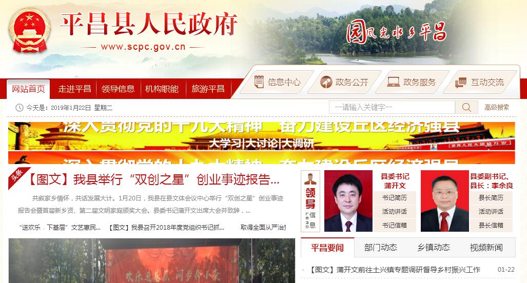 | 网站简介: 平昌,西晋太康元年(公元280年)置平州县,北周保定四年(564年)更名“同昌县”。民国35年(1946年)取“平州”、“同昌”首尾各一字命名,成立平昌设治局。民国37年(1948年)升为平昌县。平昌县地处四川东北部,米仓山南麓,是国家扶贫开发工作重点县、秦巴山区连片特困地区县、川陕苏区革命老区县、全省首批扩权强县试点县和百万人口大县。全县幅员2229平方公里,境内最高海拔1338.8米(镇龙镇贾阁山),最低海拔268.3米(元石乡黄梅溪),辖43个乡镇(29个镇、14个乡)、9个管委会、1个街道办事处,550个村(居)委会(村507个、居委会43个),总人口108万人,有农业人口80.29万人,耕地62.32万亩,森林覆盖率50.24%。县城建成区15.3平方公里,常住人口29.33万人。2015年,该县实现地区生产总值121.29亿元,比2014年增长8.3%。 |