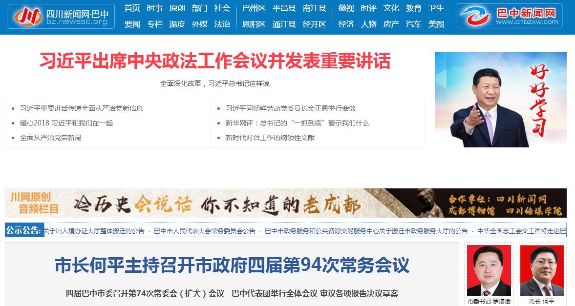 | 网站简介: 四川新闻网巴中频道由中共巴中市委宣传部与四川新闻网共同主办,是巴中重点新闻门户网站。网站提供权威、及时的巴中新闻,并汇集了巴中社会、经济、文化、生活等各个方面最新信息资讯,是巴中主流媒体、门户网站! |