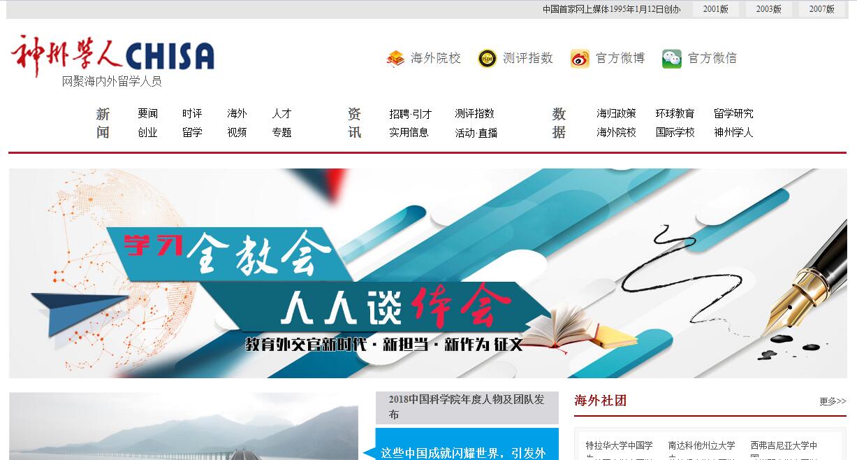 | 网站简介: 神州学人网是按照胡锦涛同志重要批示精神,于1995年1月12日创办的。它开国内互联网信息服务之先河,专门针对在外留学人员提供信息服务,对国内网络新闻宣传事业产生了重大影响,被公认为国内第一家互联网中文新闻媒体。面对新时代,努力有新作为。神州学人网将继续守正创新,不断追求卓越,致力于“聚集人才需求,网聚留学人员”,继续“讲好中国故事,发出中国声音,展示中国形象”,更好地服务于国家战略和建设教育强国的目标。2018年,神州学人网将以网聚友,聚集更多的留学人员朋友,聚集更多的留学工作战线和人才工作战线朋友,为留学人员打造更加精致的网上家园,为留学工作战线和人才工作战线搭建更好的交流寻才平台。 2018年,神州学人网新闻频道的“要闻”“时评”“海外”“留学”“人才”“创业”等栏目将突出特色新闻推送,“视频”栏目将带给你不一样的精彩;资讯频道将更加突出服务留学两端,为供需双方提供从政策支持到创业机会、岗位信息等有用信息;数据频道将系统整理推送《神州学人》杂志内容等干货,适时建设留学、人才等资料库。 |