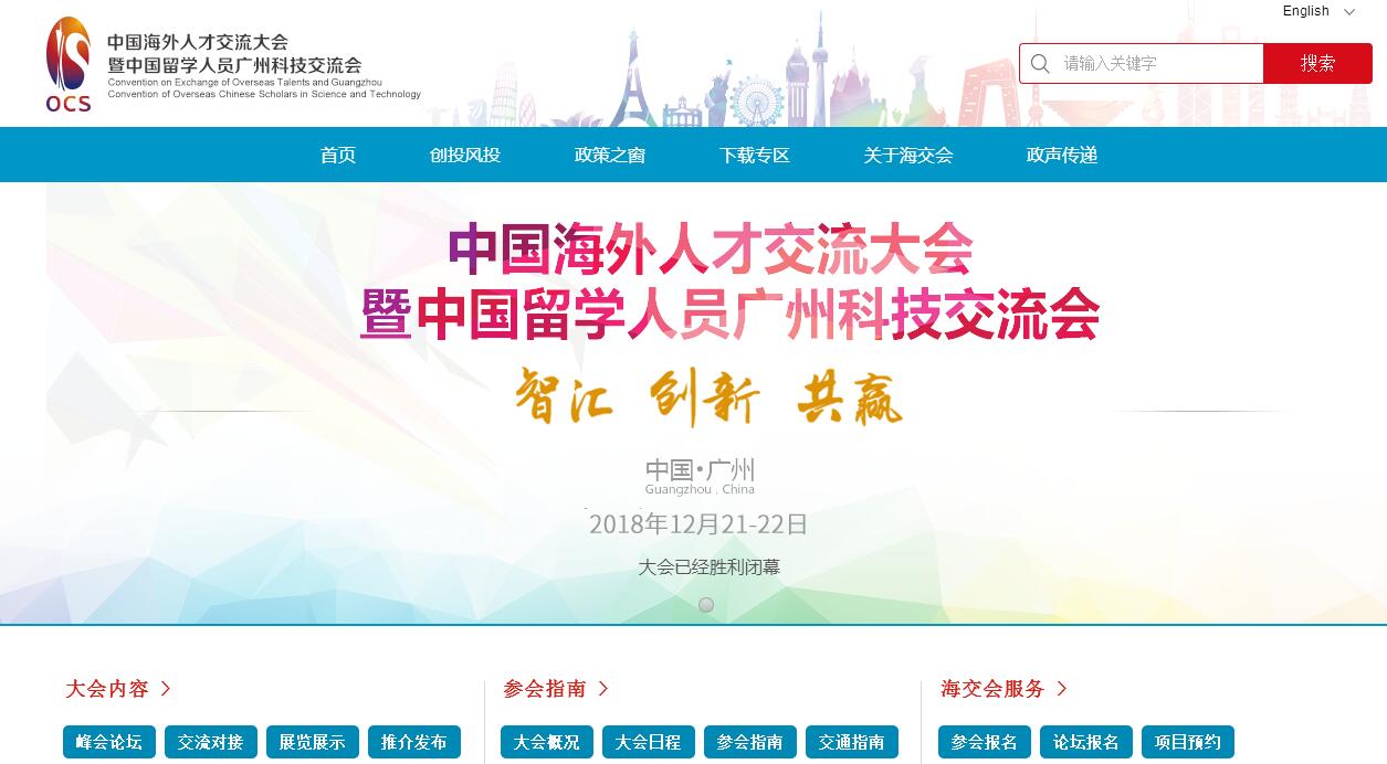 | 网站简介: 2018年是贯彻党的十九大精神的开局之年,是改革开放40周年,是决胜全面建成小康社会、实施“十三五”规划承上启下的关键一年,也是中国海外人才交流大会(中国留学人员广州科技交流会,以下简称“海交会”)创立的20周年。2018海交会将全面贯彻党的十九大精神,以习近平新时代中国特色社会主义思想为指导,落实习近平总书记“聚天下英才而用之”的人才战略和“发展是第一要务,人才是第一资源,创新是第一动力”的战略指导思想,在继承往届大会成功经验的基础上,传承海交会历史,增强道路自信和文化自信,适应国际形势变化和我国新时代经济发展的基本特征,与时俱进,全面提质增效,更好地服务于“两个一百年”奋斗目标,助力中国梦早日实现。 |