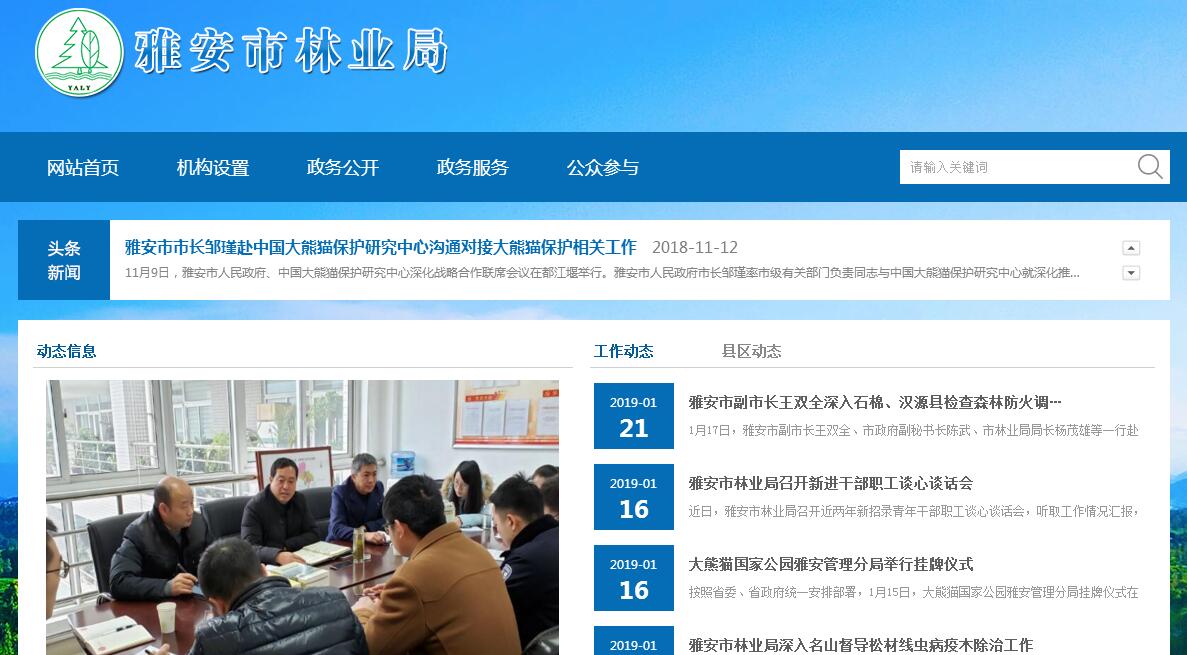 雅安市林业局主要职责:一、负责全市林业及生态建设的监督管理。贯彻执行国家有关林业的方针、政策和法律、法规,拟订全市林业及其生态建设的相关政策、发展战略、中长期规划和起草相关规范性文件并监督实施,组织拟订有关地方标准和规程并指导实施,组织开展全市森林资源、陆生野生动植物资源、湿地和荒漠的调查、动态监测和评估,并统一发布相关信息,承担林业生态文明建设的有关工作。二、负责组织、协调、指导和监督全市造林绿化工作。制订全市造林绿化规划和年度指导性计划,拟订相关市级标准和规程并监督执行,指导各类公益林和商品林的培育,指导植树造林、封山育林和以植树种草等生物措施防治水土流失工作,组织、指导和监督全民义务植树、造林绿化工作,承担林业应对气候变化的相关工作。承担市绿化委员会的具体工作。三、承担全市森林资源保护发展监督管理的职责,贯彻执行国家森林采伐限额和林地保护利用规划,组织编制并监督执行全市森林采伐限额,监督检查林木凭证采伐、运输,组织全市森林资源调查、动态监测和统计,组织、指导林地、林权管理,组织实施林权登记、发证工作,拟订全市林地保护利用规划并指导实施,依法承担林地征收(用)、占用的初审工作,管理重点国有林区的国有森林资源,承担国有森林资源资产产权变动的审核报批工作。四、负责组织、协调、指导和监督全市湿地保护工作,贯彻执行国家有关湿地保护规划及其相关的标准规定,拟订全市湿地保护规划及其相关的地方标准和规定,组织实施建立湿地保护小区、湿地公园等保护管理工作,监督湿地的合理利用。五、负责组织、协调、指导和监督全市荒漠化防治工作,贯彻执行国家有关防沙治沙、石漠化防治及沙化土地封禁保护区建设规划及其标准和规定,组织拟订相关地方标准和规定并监督实施,监督沙化土地的合理利用,组织、指导建设项目对土地沙化影响的审核,组织、指导沙尘暴灾害预测预报和应急处置,组织、协调全市有关国际荒漠化公约的履约工作。六、负责组织、指导全市陆生野生动植物资源的保护和合理开发利用,依法组织、指导陆生野生动植物的救护繁育、栖息地恢复发展、疫源疫病监测,监督管理全市陆生野生动植物猎捕或采集、驯养繁殖或培植、经营利用,监督管理野生动植物进出口。七、负责全市林业系统自然保护区的监督管理,依法指导全市森林、湿地、荒漠化和陆生野生动物类型自然保护区的建设和管理,组织协调有关国际公约的履约工作,监督管理林业生物种质资源、转基因生物安全、植物新品种保护,按分工负责生物多样性保护的有关工作。八、承担推进全市林业改革,维护农民和其他经营者经营林业合法权益的责任。贯彻执行国家有关集体林权制度、重点国有林区、国有林场等重大林业改革意见和政策,拟订全市重大林业改革的相关实施意见和政策并指导监督实施,拟订全市农村林业发展、维护农民和其他经营者经营林业合法权益的政策措施,指导、监督农村林地承包经营和林权流转,指导林权纠纷调处和林地承包合同纠纷仲裁,依法负责退耕还林工作,指导国有林场(苗圃)、森林公园和基层林业工作机构的建设和管理。九、负责监督检查全市各产业对森林、湿地、荒漠和陆生野生动植物资源的开发利用,贯彻执行国家有关林业资源优化配置政策及其产业标准,拟订全市林业产业发展规划和相关政策措施并监督实施,组织指导林产品质量监督,指导山区林业综合开发。十、承担组织、协调、指导、监督全市森林防火工作。承担市森林防火指挥部的具体工作,承担全市林业行政执法监管职责,指导全市森林公安工作,管理森林公安队伍,指导全市林业重大违法案件的查处,指导全市林业有害生物的防治、检疫工作。十一、负责指导、协调全市的林业经济工作。贯彻执行国家有关林业及其生态建设的财政、金融、价格、贸易等经济调节政策,组织、指导全市林业及其生态建设的生态补偿制度的建立和实施,编制部门预算并组织实施,提出市财政林业专项资金的预算建议,管理监督市级林业资金,管理市级林业国有资产,负责提出全市林业固定资产投资规模和方向、市财政性资金安排意见,按规定权限审核报批、核准规划内和年度计划内固定资产投资项目,编制全市林业及其生态建设的年度生产计划。十二、组织、指导、协调全市林业产业发展工作。十三、负责全市林业及其生态建设的科技、宣传、教育和外事工作,指导全市林业队伍建设。十四、承担市政府公布的有关行政审批事项。十五、管理雅安市森林公安局。十六、承办市政府交办的其它事项。
