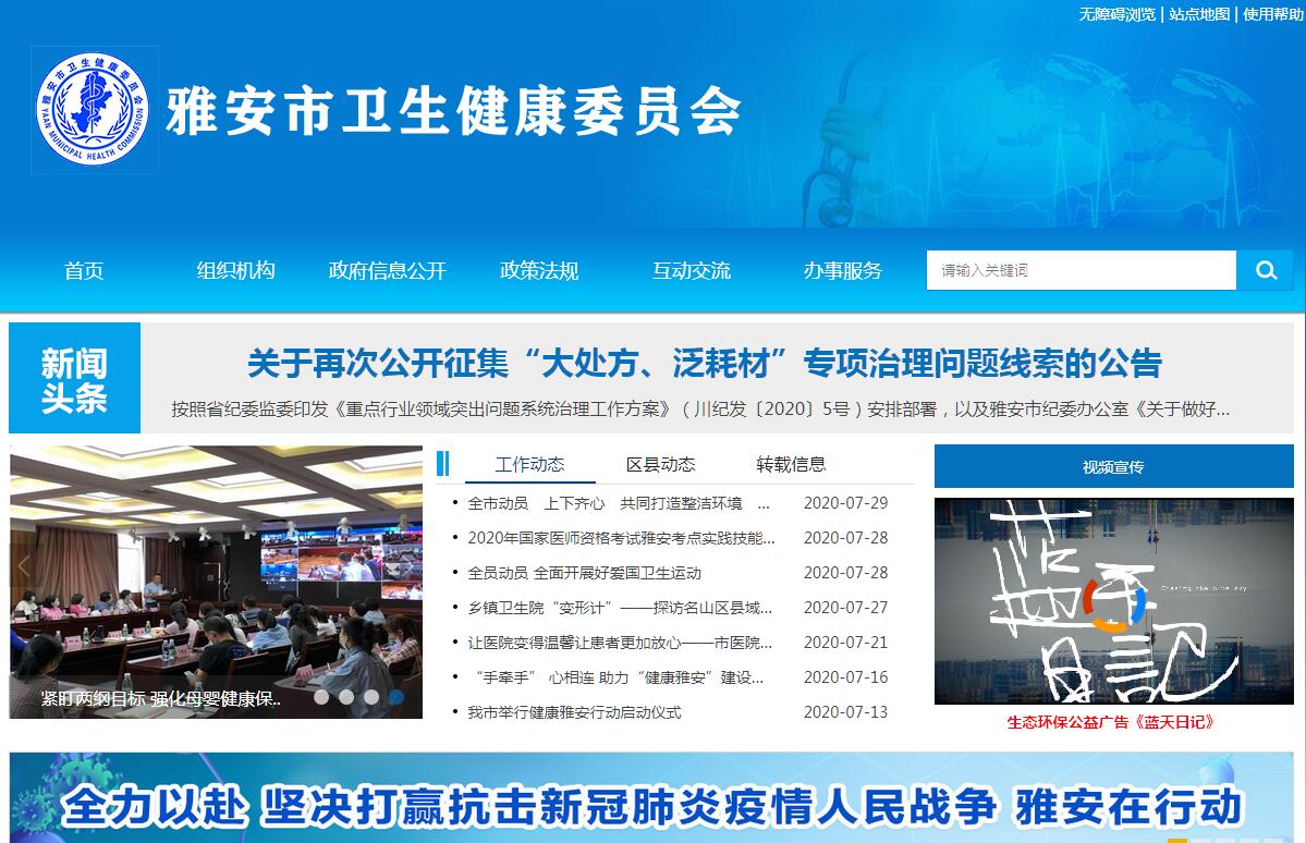 雅安市卫生健康委员会主要职责:(一)组织拟订全市卫生健康政策。贯彻执行党和国家、省委、省政府和市委、市政府、省卫生健康委关于卫生健康工作和方针、政策与法律法规及工作部署,负责起草卫生健康事业发展的规范性文件草案、政策、规划,制定卫生健康技术规范并组织实施。统筹规划全市卫生健康服务资源配置,指导全市卫生健康工作。制定并组织实施推进卫生健康基本公共服务均等化、普惠化、便捷化和公共资源向基层延伸等政策措施。(二)牵头推进全市深化医药卫生体制改革。研究提出深化医药卫生体制改革重大政策、措施的建议。牵头负责全市分级诊疗、现代医院管理、全民医保、药品供应保障、综合监管5项基本医疗卫生制度建设。制定并组织实施推动卫生健康公共服务提供主体多元化、提供方式多样化的政策措施。(三)制定并组织落实全市疾病预防控制规划、免疫规划、严重危害人民健康的艾滋病等重大传染病、寄生虫病、地方病等公共卫生问题的干预措施。负责全市卫生应急工作,组织和指导全市突发公共卫生事件预防控制和各类突发公共事件的医疗卫生救援。发布法定报告传染病疫情信息、突发公共卫生事件应急处置信息。依照国家检疫传染病和监测传染病目录,参与开展检疫监测工作。(四)贯彻落实国家应对人口老龄化政策措施。负责推进老年健康服务体系建设和医养结合工作。承担市老龄工作委员会日常工作。(五)贯彻落实国家药物政策和国家基本药物制度。组织执行国家药品法典和国家基本药物目录,执行基本药物使用的政策措施。组织实施食品安全风险监测。开展食品安全企业标准备案。(六)负责职责范围内的职业卫生、放射卫生、环境卫生、学校卫生、公共场所卫生、饮用水卫生等公共卫生的监督管理。负责传染病防治监督,健全全市卫生健康综合监管体系。(七)制定全市医疗机构、医疗服务行业管理办法并监督实施,建立医疗服务评价和监督管理体系。会同有关部门实施卫生健康专业技术人员资格标准。制定并组织实施医疗服务规范、标准和卫生健康专业技术人员执业规则、服务规范。负责医疗机构、人员和行为的日常监管。负责建立公益性导向的绩效考核和评价运行机制,推进和谐医患关系建设,提出医疗服务和药品价格政策的建议。(八)负责全市计划生育管理和服务工作。开展人口监测预警,研究提出人口与家庭发展相关政策建议,完善计划生育政策。指导市计划生育协会的业务工作。(九)指导县(区)卫生健康工作。指导基层医疗卫生、妇幼健康服务体系和基层卫生队伍建设。推进卫生健康科技创新发展。(十)负责市确定的保健对象的医疗保健工作。负责市直有关部门(单位)离休干部医疗管理工作。负责重要领导、重要外宾来雅期间的医疗卫生保障工作。负责重要会议与重大活动的医疗卫生保障工作。(十一)承担全市中医药事业发展和管理工作。(十二)依法依规履行卫生健康行业安全生产监管职责。负责职责范围内的生态环境保护、审批服务便民化等工作。(十三)完成市委、市政府交办的任务。
