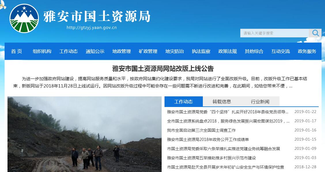 雅安市国土资源局主要职责:(一)贯彻执行国家、省有关国土资源的调控政策、措施和法律、法规,承担保护与合理利用土地资源、矿产资源的责任。编制全市国土资源发展战略和规划并组织实施,研究提出全市国土资源供需总量平衡的建议,拟订国土资源在经济运行、城乡统筹等方面的调控政策和措施。编制并组织实施全市国土规划,制定并组织实施国土资源领域资源节约集约利用和循环经济的措施。(二)承担规范国土资源管理秩序的责任。起草国土资源管理、地质环境保护等规范性文件并监督实施;组织贯彻实施土地资源、矿产资源管理的技术标准、规程、规范和办法。负责本系统、本部门依法行政工作,指导全市国土资源依法行政工作,监督检查县(区)、乡(镇)人民政府及县级国土资源行政主管部门执行和遵守国土资源管理法律、法规及土地、矿产资源规划、计划的执行情况。加强对下级国土资源行政主管部门履行职责的管理监督,直接查处县(区)、乡(镇)人民政府及县级国土资源行政主管部门违反国土资源管理法律、法规的行为。调查处理国土资源重大违法案件。(三)承担优化配置国土资源的责任。编制和组织实施全市土地利用总体规划、土地利用年度计划、土地整理复垦开发规划、矿产资源规划、地质勘查和地质灾害防治规划、矿山地质环境保护及其他专项规划、计划。指导并按法定权限审核县(区)、乡(镇)土地利用总体规划、矿产资源规划,监督检查规划执行情况。参与审核报省、市政府审批的涉及土地、矿产的相关规划及其调整。(四)负责规范国土资源权属管理。依法保护土地资源、矿产资源等自然资源所有者和使用者的合法权益,组织调处重大权属纠纷,指导土地确权,负责各类土地登记资料的收集、整理、共享和汇交管理,提供社会查询服务。(五)承担全市耕地保护的责任,确保规划确定的耕地保有量和基本农田面积不减少。按照国家政策组织实施耕地保护、基本农田保护,监督占用耕地补偿制度执行情况。监督指导未利用土地开发、土地整理、土地复垦和耕地开发工作。组织实施土地用途管制、农用地转用和土地征收征用,承担报省政府和市政府审批的各类用地的审核、报批工作。(六)承担提供全市土地利用各种数据的责任。制定地籍管理实施细则,组织土地资源调查、地籍调查、土地统计和动态监测,组织实施重大土地专项调查,指导全市地籍调查、登记和土地分等定级工作。(七)承担节约集约利用土地资源的责任。拟订并实施土地开发利用标准,管理和监督城乡建设用地供应、政府土地储备、土地开发和节约集约利用。拟订并组织实施土地使用权出让、租赁、转让等管理办法,建立基准地价、标定地价等政府公示地价制度,会同农业部门监督管理农村集体建设用地使用权的流转。执行禁止和限制供地目录、划拨用地目录等,负责审核报市政府审批的改制企业的国有土地资产的处置。(八)承担规范国土资源市场秩序的责任。监测土地市场和建设用地利用情况,监管地价,规范和监管土地市场。规范和监管矿业权市场,组织对矿业权人勘查、开采活动进行监督管理。规范和监管国土资源相关社会中介组织和行为,依法查处违法行为。(九)负责矿产资源开发的管理,依法管理矿业权的审批登记发证和转让审批登记。负责市规划矿区、对国民经济具有重要价值的矿区的管理,承担保护性开采的特定矿种、优势矿产的开采总量控制及相关管理工作,组织编制实施矿业权设置方案。(十)负责地质勘查行业和矿产资源储量管理。依法管理探矿权,管理矿产资源评审、登记、统计。组织实施地质调查评价、矿产资源勘查、矿产资源储量调查、矿山储量动态监督管理。负责地质资料、地质勘查成果管理,承担压覆矿产资源管理工作。(十一)承担地质环境保护的责任,组织、协调、指导和监督地质灾害防治工作。指导重大地质灾害应急处置,组织拟订、实施全市突发重大地质灾害应急预案。组织实施矿山地质环境、地质遗迹保护,监督管理古生物化石、地质遗迹、矿业遗迹等重要保护区、保护地,依法管理水文地质、工程地质、环境地质勘查和评价工作,监测、监督防止地下水过量开采和污染,参与城市地质、农业地质、旅游地质的勘查与评价工作。(十二)依法征收土地、矿产资源收益,规范、监督资金使用,拟订土地、矿产资源参与经济调控的政策措施。依法组织土地、矿产资源专项收入的征管,配合有关部门拟订收益分配制度,配合有关部门指导、监督全市土地整理复垦开发资金的收取和使用。参与管理土地、矿产等资源性资产,参与管理国家、省、市出资形成的矿业权权益,负责有关资金、基金的预算和财务、资产管理与监督。(十三)推进国土资源科技进步,组织开展对外合作与交流。组织制订、实施国土资源科技发展、人才培养规划和计划,推进国土资源信息化和信息资料公共服务。(十四)负责管理县级国土资源主管部门领导班子成员及副科级以上非领导职务干部。负责县级国土资源主管部门领导班子和系统的党风廉政建设、行业作风建设。(十五)承担市政府公布的有关行政审批事项。(十六)承担环境保护工作相关职责: 1.协助行业主管部门开展土地、矿产资源开发的环境监管、督促相关业主履行环保主体责任。 2.加强全市