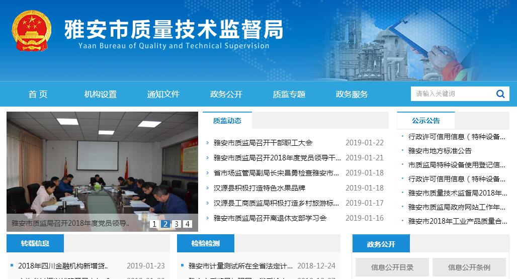 雅安市质量技术监督局是统一组织协调雅安全市标准化、计量和质量工作及特种设备监管的国家职能机构。雅安市质监工作前身起源于民国二十八年(1939年)成立的原西康省度量衡检定机构,后随西康省的撤销并入四川又经雅安地、市、县建制的多次变革而发展演变至今。12个内设机构:局办公室、人事教育科、计划财务科、政策与法规宣传科、科技与信息科、质量管理科、质量监督科、计量与认证科、标准化科、特种设备安全监察科、行政审批科、离退休干部科。2个直属机构:市质监局稽查分局(市质监局稽查支队)、市质监局飞地园区分局。4个事业单位:雅安市产品质量监督检验所(四川省茶叶产品质量检验中心)、雅安市计量测试所、雅安市特种设备监督检验所、雅安市技术监督情报所。雅安质监系统的领导和全体职工在过去55年中,在各级党委、政府和省局党组的领导下,为稳定雅安的经济秩序、扶优治劣、开展计量监督管理、产品质量监督管理及食品安全专项治理,提高企业产品质量,实施名牌战略,认真履行特种设备安全管理、综合管理、行政执法职能和服务区域经济发展,2004年在全国率先实施了在乡镇设立质量技术监督所制度;率先在全国提出“首查不罚”、“辖区执法打假责任制”,对企业实施“一站式”服务,摆正服务与监督的位置。特别是近年来,为构建和谐雅安,积极主动融入地方经济工作主战场,为促进雅安经济又好又快发展做出了积极的贡献。