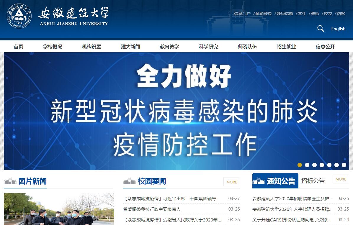 安徽建筑大学是安徽省唯一一所以土建类学科专业为特色的多科性大学,始建于1958年,坐落在安徽省合肥市。学校是安徽省与住房和城乡建设部共建高校、教育部本科教学工作水平评估优秀院校、省级博士学位授予权立项建设单位、国家“卓越工程师教育培养计划”实施高校、国家节约型公共机构示范单位、全国大学生社会实践先进单位、省人才工作先进单位、省优秀教学管理集体、省就业工作先进单位、省普通高校毕业生就业工作标兵单位、省高校后勤工作先进单位、安徽省文明单位。学校设有12个学院,现有61个本科专业,涵盖工、管、理、艺、文、法、经七大学科门类。全日制本科生近2万人,研究生1000余人。现有教职工1300人,其中专任教师900余人。专任教师中具有副高级以上专业技术职称400余人、硕士及以上学位教师750人,博士生导师12人,硕士生导师200余人。拥有国家“百千万人才工程”1人,安徽省“百人计划”1人,国家级教学名师1人、省级教学名师15人,国家级教学团队1个,省级教学团队7个,省级科技创新团队5个,省学术与技术带头人14人,享受国务院特殊津贴6人、安徽省政府特殊津贴5人。学校现有11个一级学科、46个二级学科硕士学位授权点,7个专业学位授权类别、10个专业学位授权点,8个省级重点学科、1个国家级工程实验室、4个省级重点实验室、1个省级工程实验室、11个国家级、省部级工程(技术)研究中心、1个省级国际科技合作基地。图书馆现有纸质图书160万册,电子图书210万册。学校紧紧依托“大土建”学科优势,积极服务地方经济社会发展,凝练科研方向,在节能环保、城镇化与徽派建筑、地下工程、公共安全、先进建筑材料等重点领域,形成了多个具有较大影响、特色鲜明的科研方向和学术团队。近年来,主持国家重点研发计划、国家科技支撑计划、国家科技重大专项、973计划、国家自然科学基金和社科基金项目130多项,省部级科研课题600多项;获省部级以上科技奖励68项,其中国家科技进步二等奖4项,中国发明专利金奖1项。学校始终坚持质量立校,不断深化教育教学改革,建立健全质量监控体系,大力实施质量工程并取得突出成绩。近年来,获得国家级质量工程项目18项、省级质量工程项目400多项,其中国家级教学成果二等奖1项,省级教学成果特等奖5项、一等奖10项。学校现有国家级特色专业建设点4个,国家级精品课程1门、省级精品课程18门,国家级双语教学示范课程1门,国家级规划教材1部,国家级人才培养模式创新实验区1个,国家级实验教学示范中心2个,国家新工科项目2项。学校现有节能研究院、建筑科学研究中心、徽派建筑研究所等25个科研机构,拥有建筑设计研究院、岩土勘察设计院、规划设计研究院、项目管理有限公司、建元装饰工程有限公司等校办企业,成为培养具有创新精神和实践能力的高级工程应用型人才的基地。学校面向全国24个省、市招生。近年来,生源质量不断提高,新生录取分数线和毕业生就业率连续多年位居省属高校前列,毕业生深受用人单位青睐。学校全面推进素质教育,把提高人才培养质量放在突出位置,着力培养具有良好思想道德品质、创新精神和实践能力的高素质应用型人才。学生在全国大学生数学建模竞赛、电子设计竞赛、机器人足球比赛、“挑战杯”大赛、智能建筑大赛、“CCTV杯”全国英语演讲大赛和各类建筑、规划、结构设计等竞赛中,获得国家、省级表彰、奖励600多项。学校对外交流日趋活跃,已与美国中密歇根大学、美国伊利诺理工学院、美国休斯顿大学明湖分校、美国布里奇波特大学、德国德累斯顿工业大学、德国柏林自由大学、英国斯旺西大学、韩国韩瑞大学,以及铭传大学等台湾高校建立了校际合作关系,在学生联合培养、教师学术交流和科研合作、中外合作办学等方面取得了长足的进展。学校是教育部认定的中外合作办学单位。学校坚持“进德、弘毅、博学、善建”的校训,坚持“立足安徽、面向全国,依托建筑业、服务城镇化”的办学定位和“质量立校、创新领校、人才强校、特色兴校、依法治校”的办学理念,坚持走打好“建”字牌,做好“徽”文章的特色发展之路,求真务实,开拓进取,为实现高水平有特色建筑大学的建设目标而努力奋斗!