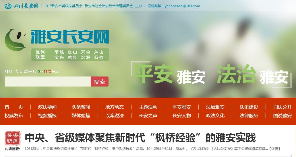 | 网站简介: 雅安长安网由中共雅安市委政法委员会、雅安市社会管理综合治理委员会主办,是四川长安网群组成站点之一、雅安长安网群市级主站,于2013年12月25日正式上线(试运行),是我市最具权威性的市级政法综治网络宣传阵地。雅安长安网内容定位于将党和政府维护社会稳定、创新社会治理、开展政法工作的方针政策和工作情况及时、准确地告诉群众,把全市政法系统开展平安建设、法治建设、队伍建设所取得的成效及时传达给群众,为群众提供法律政策咨询、信息检索、政法服务指南等服务,提升新形势下社会沟通能力和服务群众水平,充分保障人民群众的知情权、表达权、参与权、监督权,以赢得人民群众对政法综治维稳工作的理解和支持。目前,雅安长安网共设置政法新闻、司法公开、政法宣传、政法文化、政法服务5大板块。 |