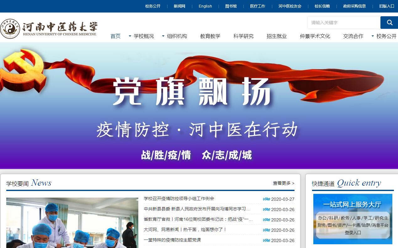 河南,是中华民族的主要发祥地之一,是华夏民族始祖、人文初祖黄帝的故里,是医圣张仲景的故乡。自古以来,中原医林兴盛,名医大家辈出,中药资源丰富,群众基础深厚,是中医药文化的重要发源地。河南中医药大学创建于1958年,是全国建校较早的高等中医药院校之一,前身是1955年在开封创办的河南省中医进修学校。学校位于省会郑州,现有4个校区,分别为龙子湖校区、东明路校区、人民路校区、东风路校区,占地面积1594.94亩。是河南省人民政府和国家中医药管理局共建高校、国家中西部高等教育振兴计划高校、教育部中国政府奖学金生培养高校、博士学位授权单位、省级文明单位,是河南省中医药人才培养、科技创新、医疗及社会服务和文化传承的龙头和中心。2016年3月1日,教育部正式发文,将我校更名为河南中医药大学。50多年来,学校已由单一的中医药学科发展为医、理、管、工、文等多学科协调发展,涵盖本科、研究生(博士、硕士)、留学生、继续教育等多个培养类别的综合性中医药大学。现设有基础医学院、药学院、第一临床医学院、第二临床医学院、骨伤学院、第三临床医学院、针灸推拿学院、护理学院、康复医学院、人文学院、外语学院、信息技术学院、软件职业技术学院、国际教育学院、继续教育学院、思想政治理论教研部、体育教研部、职业技能培训鉴定中心等18个院(部、中心)。学校面向全国31个省、市、自治区及港澳台、海外招生,现有普通全日制在校生19000余人,其中研究生1500余人,留学生50人。学校大力实施“人才兴校”战略,打造了一支实力雄厚的人才队伍。现有教职工1462人,专任教师1019人。硕士生导师441人,其中博士生导师66人。有国医大师4人,国家万人计划百千万工程领军人才1人,百千万人才工程国家级入选3人,省特聘教授6人,“双聘院士”1人,聘请了44位国内外著名学者为我校终身教授、首席教授、兼职教授及客座教授;享受国务院政府特殊津贴专家36人、享受河南省政府特殊津贴专家4人,中原学者2人,省优秀专家33人,河南中医事业终身成就奖获得者20人,省名中医31人,省杰出专业技术人才1人,河南省高等学校教学名师8人,全国老中医药专家学术经验继承工作指导教师57人,河南省学术技术带头人和河南省跨世纪学术技术带头人27人、厅级学术技术带头人70人、全国中药特色技术传承人才培养对象15人、省高校青年骨干教师资助对象87人、教育部新世纪优秀人才支持计划等项目获得者104人。先后有20多人次获全国“模范教师”、“优秀教师”、“师德建设先进个人”等殊荣;140余人次被评为省“优秀教师”、“师德建设先进个人”、“劳动模范”和“教育教学先进工作者”。不断加强学科、专业建设,全面提升教学水平。现设有中医学、针灸推拿学、中西医临床医学、预防医学、护理学、康复治疗学、医学检验技术、医学影像技术、应用心理学、中药学、药学、中药资源与开发、药物制剂、中药制药、制药工程、生物工程、计算机科学与技术、市场营销、公共事业管理、信息管理与信息系统、文化产业管理、英语、汉语国际教育、软件工程等24个本科专业和1个应用心理学第二学位专业。现有国家中医药管理局中医药重点学科24个;河南省优势特色学科1个,河南省重点学科一级学科8个、二级学科2个。有4个国家级高等学校特色专业建设点、2个国家级“专业综合改革试点”项目、7个省高等学校特色专业建设点、1个国家级高等学校实验教学示范中心、1个国家级大学生校外实践教育基地、2个国家级卓越医生(中医)教育培养计划改革试点、1门国家级精品视频公开课,10个省级“专业综合改革试点”项目、8个省级高等学校优秀教学团队、7个省级高等学校实验教学示范中心、2个省级虚拟仿真实验教学中心,18门省级精品课程、9门省级精品资源共享课、7门省级精品视频公开课、4门省级双语教学示范课程等。高度重视学位与研究生教育。学校现有中医学、中药学两个博士学位授权一级学科,涵盖14个二级学科;有中医学、中药学、中西医结合、药学、基础医学、临床医学、马克思主义理论等7个硕士学位授权一级学科,涵盖57个二级学科(含4个自主设置目录外二级学科);有中医、中药学、护理、翻译、工程(制药工程)等5个硕士专业学位类别。2003年被教育部批准为联合培养博士研究生工作单位;2013年,被国务院学位委员会批准为博士学位授予单位,中医学、中药学两个一级学科获得博士学位授权;2014年9月,首届博士研究生顺利招生。学校下设3所集教学、医疗、科研为一体的直属附属医院,中医医疗、教学、科研队伍实力雄厚,具有完善的教学辅助体系。已为全省乃至全国培训各类人员1.66余万人次,促进了基层医疗卫生服务水平的提升;有国家级重点专科(专病)35个、省级重点专科23个。学校有8所非直属附属医院(洛阳正骨医院、郑州市中医院、安阳市中医院、开封市中医院、濮阳市中医院、郑州市大肠肛门病医院、洛阳市第一中医院、郑州人民医院),共计129个教学实习基地。图书馆各类图书159.9万册,中外文期刊1704种,馆藏的中医线装古籍文献尤为丰富,收藏量居全国中医药院校前列。坚持教学与科研并重。学校现有科技部国际科技合作基地、国家中医临床研究基地、国家科普教育基地、河南省高校人文社会科