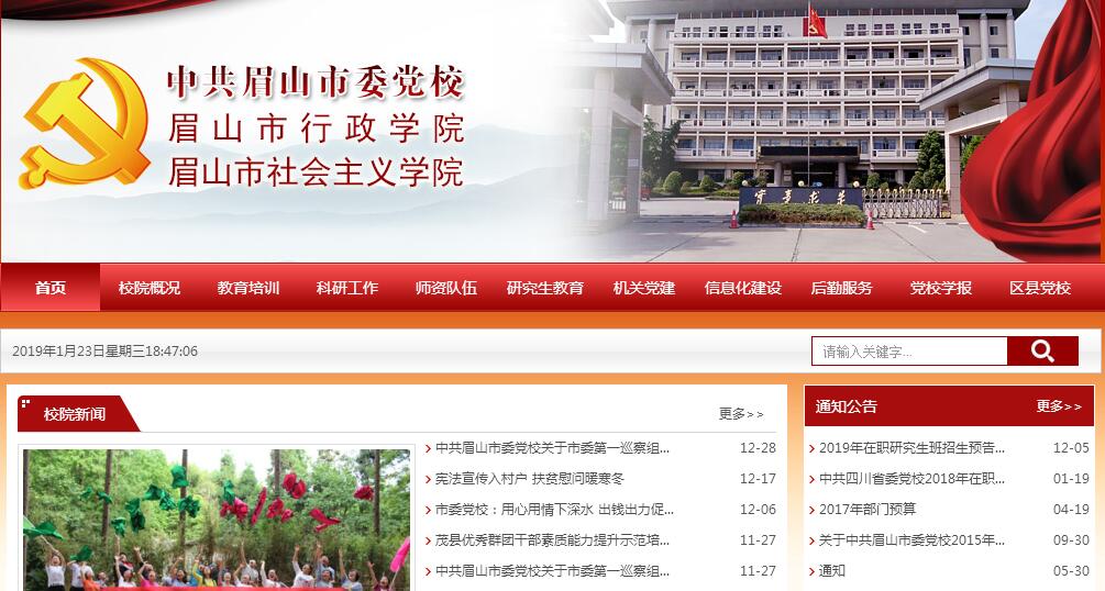 | 网站简介: 中共眉山地委党校(现中共眉山市委党校)成立于1998年10月。2001年10月和2005年7月,中共眉山市委先后批准市委党校与市行政学院、市社会主义学院合署办公,现在实行“一校四院(市委党校、市行政学院、市社会主义学院、市非公有制经济组织和社会组织学院、四川文化产业职业干部函授学院眉山分院)、五块牌子,一套人马”的办学体制。校园占地60亩,总投资3000多万元,于2001年10月破土动工,2003年12月竣工投入使用,校舍建筑面积2万余平方米。校(院)设施齐备、功能完善、设备配套,是眉山市集教育培训、会议接待等多功能于一体的培训、会议场所。 |