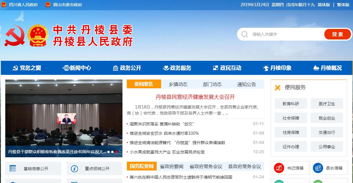 丹棱古称齐乐郡,隋开皇13年(593年)建县,因城北红色有棱、状若飞旗的赤岩山而得名。全县幅员面积449平方公里,辖7个乡镇,总人口16.3万,城镇化率39.22%。县城建成区面积6.4平方公里,人口5.4万。丹棱是大雅文化的发祥地,是全国第一个农村生态文明家园建设试点县、国家可持续发展实验区、国家级生态示范区、中国桔橙之乡。丹棱县距成都双流国际机场仅90公里、乐山市65公里。境内国道351线和遂资眉高速公路横跨东西;丹蒲路、丹名路纵贯南北,与成新蒲快速通道形成对接。地势西北高、东南低,逐渐斜低,全县山区、丘区、坝区面积各占三分之一。年平均气温16.7℃,年降雨量1200—1500毫米。森林覆盖率56.46%。县内钙芒硝矿储藏量达250亿吨,初步探明天然气储藏量670亿方,有丰富的矿泉水、页岩、钾矿等。2017年,全县地区生产总值57.7亿元;全社会固定资产投资60.1亿元;规模以上工业增加值下降12.5%;地方一般公共预算收入3.59亿元、支出13.24亿元;社会消费品零售总额23.19亿元;城镇居民人均可支配收入29584元;农民人均可支配收入16495元。全县有机械、陶瓷建材、钾钠化工3个工业园区,规划面积20平方公里,重点发展陶瓷建材、齿轮机械、钾钠化工和新兴产业四大产业。有中车丹齿、柯美特集团等规模以上企业38家,2017年全年工业总产值完成36.23亿元,工业入库税金1.15亿元。高新技术企业7家,产业总产值8.24亿元。县内有涉农电商企业50余家、网店微店1500余家;建成乡鹰网、雅脉商城、丹棱智慧通、大雅电商等4家本土电商平台,2017年电商销售额3.5亿余元,直接和间接带动就业10000余人。依托“互联网+”直销丹棱特产,特色水果平均售价上涨近40%。房地产企业主要有丹棱县万景房地产开发有限公司、眉山中泰房地产开发有限公司等。2017年全年商品房销售面积8.92万平方米,销售额4.37亿元,均价4898元/平方米。全县大力发展“丹棱不知火”“丹棱桔橙”等优质柑橘,建成种植面积超10万亩、产值超10亿元的“不知火”“双十”园区;种植桔橙面积16万亩、产值达26.6亿元。深入推进农副产品加工,“丹棱冻粑”成功注册国家证明商标,全年实现产值0.2亿元;“丹峨仙”茶业被认定为眉山市知名商标,全年实现销售收入5400万元。全县共有各级各类学校54所,其中小学12所,初中5所,九年一贯制学校1所,完全中学1所,中等职业学校1所,幼儿园34所(公办1所,民办33所)。2017年在校(园)学生总数17083人,其中小学6957人,初中2611人,高中1475人,中等职业学校954人,园幼儿5086人。全年小学学龄儿童净入学率100%,初中入学率100%,高考各类本科上线320人,上线率60.4%。全县教师总数1125人,其中小学教师392人,初中教师283人,高中教师119人,中职教师49人,幼儿园专任教师229人。有文化站7个,体育场馆、文化馆、公共图书馆、博物馆、青少年活动中心各1个。医疗卫生机构176个,床位数702张;卫生人员978人,其中执业(助理)医师308人。丹棱是大雅文化的重要传承地,北宋元符三年(1100年),丹棱人杨素建“大雅堂”,“难登大雅之堂”典出于此,2014年,纪念性恢复建成大雅堂。有3A级景区2个(老峨山、丹棱•桃花源),有国家级重点文物保护单位摩崖石刻造像、丹棱白塔,省级森林公园九龙山等。丹棱特产有:“不知火”柑橘、龙秀牌土鸡蛋、峨山云雾玉芽、脆红李、枇杷、葡萄等;名小吃有:丹棱冻粑、八孃凉粉、刘鸡肉、碗碗羊肉等。县内有旅行分社2家、精品酒店2家(丹棱锦江饭店、西雅图酒店),星级农家乐/乡村酒店16家,旅游从业人员3500余人。2017年全年,全县共计接待游客333万人次,实现旅游总收入28.65亿元。