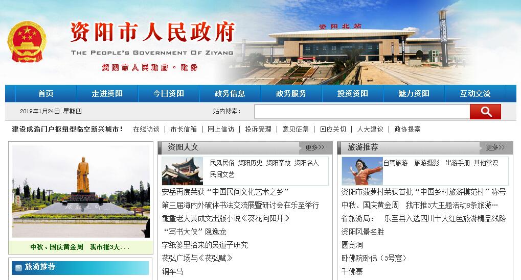 资阳是陈毅元帅的故乡,同时连接成都、重庆“双核”,是成渝经济区、成都经济区的重要组成部分。1998年设立资阳地区,2000年撤地建市,辖雁江区、安岳县、乐至县,幅员面积5747平方公里,总人口348.9万人。资阳历史文化底蕴深厚。35000年前的“资阳人”开启四川人类文明发展历史篇章。哺育了东周孔子之师苌弘、西汉辞赋家王褒、东汉经学家董钧等历史名人,被誉为“蜀人原乡、三贤故里”。资阳区位条件优越。地处成渝经济区腹心地带,市区距成都中心城区87公里,成渝、内资遂、遂资眉等6条高速公路穿境而过,乘坐成渝高铁从资阳出发20多分钟可到成都、1小时到重庆,成都天府国际机场距资阳城区仅18公里。资阳产业特色鲜明。立足资源禀赋,经过十余年发展,形成了造车、食品、医药等主导产业。四川现代、中车资阳机车等车产业相关企业达200多家,柠檬种植规模、产量和市场占有率占全国的80%以上,古、多、精、美的唐宋摩崖石刻造像保存十万余尊,“安岳气田”天然气探明储量达6710亿立方米,奠定了坚实的产业发展基础。资阳发展前景广阔。国家建设“一带一路”、长江经济带和成渝经济区,四川实施“三大发展战略”,推进成都天府国际机场和临空经济区建设,以及系统推进全面创新改革试验、规划建设中韩创新创业园,为资阳带来重大历史机遇。近年来,资阳经济社会各项事业持续健康发展。2017年全市实现地区生产总值(GDP)1022.2亿元,比上年增长7.8%。
