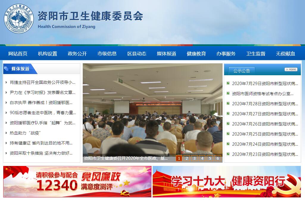 资阳市卫生健康委员会主要职责:(一)组织拟订全市卫生健康政策。负责拟订卫生健康事业发展政策规划,组织实施卫生健康标准和技术规范。统筹规划全市卫生健康资源配置。制定并组织实施推进卫生健康基本公共服务均等化、普惠化、便捷化和公共资源向基层延伸等政策措施。(二)牵头推进全市深化医药卫生体制改革。研究提出深化改革重大政策、措施的建议。牵头负责全市分级诊疗、现代医院管理、全民医保、药品供应保障、综合监管5项基本医疗卫生制度建设。制定并组织实施推动卫生健康公共服务提供主体多元化、提供方式多样化的政策措施。(三)制定并组织落实全市疾病预防控制规划、免疫规划以及严重危害人民健康的艾滋病等重大传染病、寄生虫病、地方病等公共卫生问题的干预措施。负责全市卫生应急工作,组织和指导全市突发公共卫生事件预防控制和各类突发公共事件的医疗卫生救援。发布法定报告传染病疫情信息、突发公共类卫生事件应急处置信息。依照国家检疫传染病和监测传染病目录,参与开展检疫监测工作。(四)贯彻落实国家应对人口老龄化政策措施。负责推进老年健康服务体系建设和医养结合工作。承担市老龄工作委员会日常工作。(五)贯彻落实国家药物政策和国家基本药物制度。开展药械使用监测、临床综合评价和短缺药品预警,组织执行国家药典、国家基本药物目录、省增补目录和基本药物使用的政策措施。组织实施食品安全风险监测,开展食品安全企业标准备案。(六)负责职责范围内的职业卫生、放射卫生、环境卫生、学校卫生、公共场所卫生、饮用水卫生等公共卫生的监督管理。负责传染病防治监督,健全卫生健康综合监管体系。(七)制定全市医疗机构、医疗服务行业管理办法并监督实施,建立医疗服务评价和监督管理体系。会同有关部门实施卫生健康专业技术人员资格标准。贯彻实施医疗服务规范、标准和卫生健康专业技术人员执业规则、服务规范。负责医疗机构、人员和行为的日常监管。(八)负责全市计划生育管理和服务工作。开展人口监测预警,研究提出人口与家庭发展相关政策建议,贯彻执行计划生育政策。(九)指导县(区)卫生健康工作。指导基层医疗卫生、妇幼健康服务体系和基层卫生队伍建设。推进卫生健康科技创新发展。(十)负责市确定的保健对象的医疗保健工作。负责重要会议与重大活动的医疗卫生保障工作。(十一)负责拟订全市中医药中长期发展规划,并纳入卫生健康事业发展总体规划和战略目标。承担全市中医医疗、预防、保健、康复及临床用药等的监督管理,指导基层医疗卫生机构中的中医药工作。开展中药资源的保护、开发和合理利用工作,负责中医药人才培养、中医药师承教育,继承和发展中医药文化。(十二)指导市计划生育协会的业务工作。(十三)依法依规履行卫生健康行业安全生产监管职责。负责职责范围内的生态环境保护、审批服务便民化等工作。(十四)完成市委、市政府交办的其他任务。