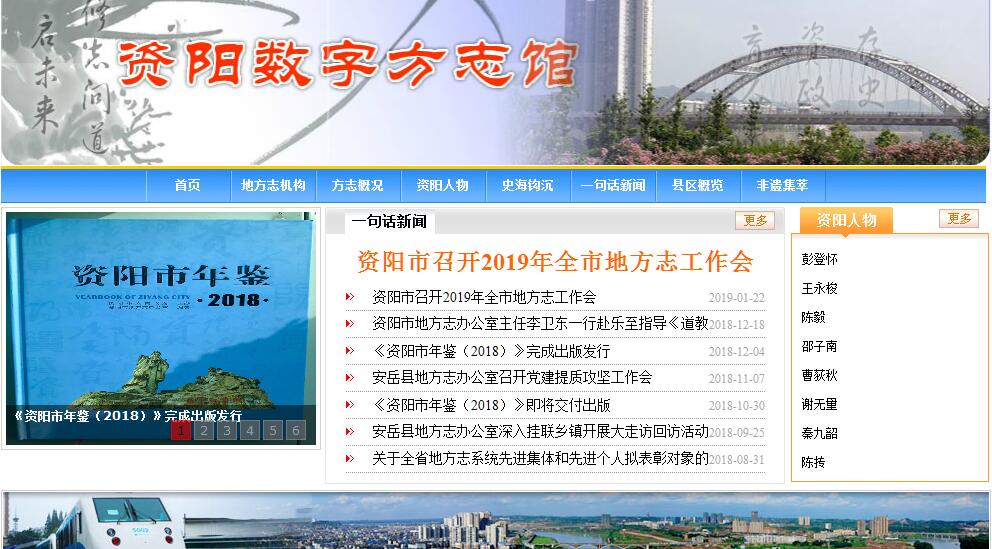 | 网站简介: 资阳市地方志办公室为财政全额拨款的正县级参公管理事业单位,内设综合科、业务科两个科室。截至2016年末,有在编人员5名。主要职责是依据《地方志工作条例》,制定地方志的编纂政策、规定及规划,并负责组织实施、检查指导和协调监督。下辖雁江区地方志办公室、安岳县地方志办公室、乐至县地方志办公室,均为正科级参公管理事业单位,截至2016年末,共有在编人员13名。 |