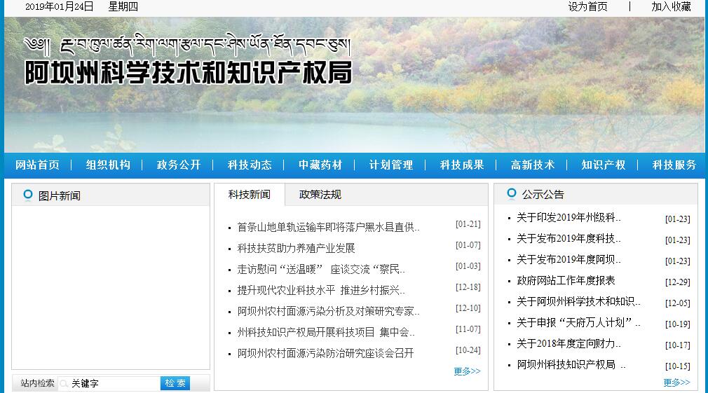 阿坝藏族羌族自治州科学技术局主要职责:(一)贯彻执行国家、省有关科学技术、知识产权的方针政策和法律、法规;起草全州有关科技发展的地方性法规、规章草案和政策措施,报州政府批准后组织实施和监督检查。(二)牵头拟订和实施全州科学技术和知识产权发展规划,提出全州科学技术、知识产权发展的重大布局和优先领域,负责组织拟订并实施科技支撑计划、重点基础研究计划、软科学研究计划和统筹协调基础研究、前沿技术研究、重大社会公益性技术研究及关键技术、共性技术研究,牵头组织经济社会发展重要领域的重大关键技术攻关。(三)会同有关部门组织科技重大专项实施中的方案论证、综合平衡、评估验收和拟订相关配套政策,对科技重大专项实施中的重大调整提出建议。(四)推进全州创新体系建设,会同有关部门拟订促进产学研结合的政策措施,提出科研条件保障规划和政策措施建议,推进科技基础条件平台(基地)建设和科技资源共享。(五)会同有关部门拟订高新技术产业及园区发展的规划和政策措施,负责组织高新技术企业认定、指导高新技术产业开发园区、基地的建设,推动企业自主创新能力建设。(六)组织拟订科技促进农村和社会发展的政策措施,指导农业科技园区和可持续发展实验区建设,促进以改善民生为重点的农村建设和社会事业发展。(七)负责全州科技合作交流,会同有关部门拟订促进产学研结合的相关政策,牵头组织开展与州外科研院所、大专院校等进行合作,组织实施国际科技合作计划并承担科技援助的相关工作。(八)推进全州科技体制改革工作,研究提出科技体制改革的政策和重大措施建议,优化科研机构布局,会同有关部门拟订全州科技人才队伍建设规划和提出相关政策建议。(九)负责本部门预算中的科技和知识经费预决算及经费使用的监督管理,会同有关部门提出强化科技投入及优化科技资源配置的政策措施建议。(十)负责全州科学技术奖励、科技成果鉴定(评价)、科技成果推广转化、科技类民办非企业单位管理等工作。组织相关重大科技成果应用示范,推动企业自主创新能力建设。(十一)研究制定促进民营科技企业发展的政策措施,指导全州民营科技企业和科技中介机构工作。制定科普规划,拟订促进技术市场、科技中介组织发展的政策。负责相关技术合同审核、科技评估管理、科技统计管理和科技保密工作,推动全州科技服务体系的建立。(十二)贯彻执行国家、省有关知识产权方面的方针、政策、法律、法规,协同相关部门负责全州知识产权行政执法工作;主管全州专利工作,组织开展专利咨询、专利统计、专利法律法规及政策的宣传普及工作;指导全州知识产权和专利工作;依法处理各种专利纠纷,查处假冒专利行为。(十三)会同相关部门开展党政一把手抓第一生产力的目标责任制的考核工作。协同有关部门拟定有关科技人员管理的政策和规定,协同负责中青年学术、技术带头人的选拔、培养及引进。承办自然科学研究机构和民营科研机构科研人员的技术职称评审和推荐工作。协同做好科技特派员的选派及业务指导工作。研究科技人才资源合理配置,协同有关部门制定相关政策。组织指导全州科技干部培训工作。(十四)组织拟订科学技术普及规划和提出政策措施建议,负责科学技术普及工作,指导协调科普活动和科技宣传工作,推进全州科普能力建设,承担科技评估和科技统计工作。(十五)承担州决策咨询委员会交办的有关工作。(十六)承担州政府公布的有关行政审批事项。(十七)承办州政府及省科技厅、省知识产权局交办的其他事项。