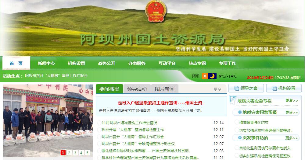 阿坝州国土资源局是阿坝州负责国土资源管理的政府机构。其主要职责:(一)贯彻执行国家有关国土资源的调控政策、措施和法律、法规,承担保护与合理利用土地资源、矿产资源及地质灾害防治的责任。编制全州国土资源发展战略和规划并组织实施,研究提出全州国土资源供需总量平衡的政策建议,拟订国土资源在经济运行、城乡统筹等方面的调控政策和措施。编制并组织实施全州国土规划,制定并组织实施国土资源领域资源节约集约利用和循环经济的政策措施。(二)承担规范国土资源管理秩序的责任。拟定并监督实施本州土地、矿产等自然资源管理和地质灾害防治的规章制度,制定地质环境保护的政策、规章制度,组织实施国土资源调查评价技术规程、国土资源开发利用标准。负责本系统、本部门依法行政工作,指导全州国土资源依法行政工作,监督检查各县人民政府及其国土资源行政主管部门执行和遵守国土资源管理法律、法规及土地、矿产资源规划、计划的执行情况。加强对下级国土资源行政主管部门履行职责的管理监督,直接查处县人民政府及其国土资源行政主管部门违反国土资源管理法律、法规的行为。调查处理国土资源重大违法案件。(三)承担优化配置国土资源的责任。编制和组织实施全州土地利用总体规划、土地利用年度计划、土地整理复垦开发规划和其他专项规划、计划。指导并按法定权限审核各县土地利用总体规划、矿产资源规划,组织编制矿产资源、地质勘查、地质环境规划和地质灾害防治、矿山地质环境保护等其他专项规划并监督检查规划执行情况。参与审核报国务院、省政府审批的涉及土地、矿产、地质灾害防治的相关规划及其调整。(四)负责规范国土资源权属管理。依法保护土地资源、矿产资源等自然资源所有者和使用者的合法权益,组织调处重大权属纠纷,指导土地确权,负责各类土地登记资料的收集、整理、共享和汇交管理,提供社会查询服务。(五)承担全州耕地保护的责任,确保规划确定的耕地保有量和基本农田面积不减少。牵头拟订并组织实施耕地保护政策,组织实施基本农田保护,监督占用耕地补偿制度执行情况。指导未利用土地开发、土地整理、土地复垦和耕地开发的监督工作。组织实施土地用途管制、农用地转用和土地征收征用,承担报国土资源部和省政府审批的各类用地的审核、报批工作。(六)承担及时准确提供全州土地利用各种数据的责任。拟定和贯彻实施地籍管理办法,组织土地资源调查、地籍调查、土地统计和动态监测,组织实施重大土地专项调查,指导全州地籍调查、登记和土地分等定级工作。(七)承担节约集约利用土地资源的责任。拟订并实施土地开发利用标准,管理和监督城乡建设用地供应、政府土地储备、土地开发和节约集约利用。拟订并组织实施土地使用权出让、租赁、作价出资、转让等管理办法,建立基准地价、标定地价等政府公示地价制度,会同农业部门监督管理农村集体建设用地使用权的流转。组织实施禁止和限制供地目录、划拨用地目录等,承担审核报省政府审批的改制企业的国有土地资产的处置。(八)承担规范国土资源市场秩序的责任。监测土地市场和建设用地利用情况,监管地价,规范和监管土地市场。规范和监管矿业权市场,组织对矿业权人勘查、开采活动进行监督管理。规范和监管国土资源相关社会中介组织和行为,依法查处违法行为。(九)负责矿产资源开发的管理,依法管理矿业权的审批登记发证和转让审批登记。负责州规划矿区、对国民经济具有重要价值的矿区的管理,承担保护性开采的特定矿种、优势矿产的开采总量控制及相关管理工作,组织编制实施矿业权设置方案。(十)负责地质勘查行业和矿产资源储量管理。组织实施地质调查评价、矿产资源勘查,管理州级地质勘查项目,组织实施州级重大地质勘查专项,管理地质勘查资质、地质资料、地质勘查成果,统一管理公益性地质调查和战略性矿产勘查工作。管理矿产资源评审、登记、统计,组织实施矿山储量动态监督管理,组织实施矿产资源储量调查,承担压覆矿产资源管理工作。(十一)承担地质环境保护和地质灾害防治的责任,组织、协调、指导和监督地质灾害防治工作。指导重大地质灾害应急处置,组织拟订、实施全州突发重大地质灾害应急预案。组织实施矿山地质环境、地质遗迹保护,监督管理古生物化石、地质遗迹、矿业遗迹等重要保护区、保护地,依法管理水文地质、工程地质、环境地质勘查和评价工作,监测、监督防止地下水过量开采和污染,承担城市地质、农业地质、旅游地质的勘查与评价工作。(十二)依法征收土地、矿产资源收益,规范、监督资金使用,拟订土地、矿产资源参与经济调控的政策措施。依法组织土地、矿产资源专项收入的征管,配合有关部门拟订收益分配制度,配合有关部门指导、监督全州土地整理复垦开发资金的收取和使用。参与管理土地、矿产等资源性资产,参与管理国家、省、州出资形成的矿业权权益,负责有关资金、基金的预算和财务、资产管理与监督。(十三)推进国土资源科技进步,组织开展对外合作与交流。组织制订、实施国土资源科技发展、人才培养规划和计划,组织实施重大科技专项,推进国土资源信息化和信息资料公共服务。协调境外矿产资源勘
