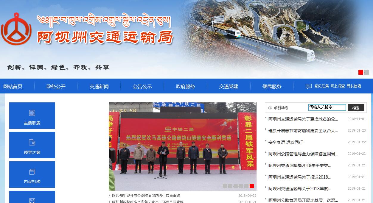 阿坝州交通运输局主要职责:(一)贯彻执行国家、省有关交通运输行业的方针、政策和法律、法规。组织拟订并监督实施公路、水路等行业规划、政策和标准,会同有关部门组织编制综合运输体系规划,参与拟订物流业发展战略和规划。(二)拟订全州交通运输地方性法规、规章草案,负责本系统、本部门依法行政工作,落实行政执法责任制。指导公路、水路行业有关体制改革工作,承担全州高速公路协调管理的有关工作。(三)承担道路、水路交通运输市场监管责任,组织制定道路、水路运输有关政策、技术标准和运营规范并监督实施,指导城乡客运管理工作,指导出租汽车行业管理工作,会同有关部门制定运输价格。(四)承担水上交通安全监管责任。负责水上交通管制、运输船舶及相关水上设施检验、登记和防止污染、救助打捞、通讯导航、危险品运输的监督管理工作,负责船员管理相关工作。指导水上交通安全事故、船舶及相关水上设施污染事故的应急处置,依法组织或参与事故调查处理工作。(五)负责提出公路、水路固定资产投资规模和方向、州财政性资金安排建议,按照规定权限审批、核准省、州规划内和年度计划规模内固定资产投资项目。会同有关部门拟订公路、水路有关规费政策并监督实施,提出有关财政、土地、价格等政策建议。指导交通运输行业审计工作。(六)承担公路、水路建设市场监管责任。拟订公路、水路工程建设相关政策、制度、技术标准并监督实施,组织协调公路、水路有关重点工程建设和工程质量、安全生产监督管理工作。负责对交通行业和产业项目的招标投标活动的监督执法。指导交通运输基础设施管理和维护,承担有关重要设施的管理和维护。按规定负责码头规划和码头岸线使用管理工作,指导交通运输行业特许经营管理,会同有关部门组织实施交通运输行业职业资格管理工作。(七)指导公路、水路行业安全生产和应急管理工作。按规定组织协调省及州重点物资和紧急客货运输,负责全州高速公路及重点干线路网运行监测和协调。组织协调地方交通战备工作,承担国防动员有关工作。(八)制定交通运输科技政策并监督实施,组织重大科技开发。指导全州交通运输信息化建设,监测分析运行情况,开展相关统计工作,发布有关信息。指导公路、水路行业环境保护和节能减排工作。(九)负责公路、水路有关涉外工作,开展对外经济技术交流与合作,指导全州交通运输行业招商引资和利用外资工作。(十)承担州政府公布的有关行政审批事项。(十一)承办州政府交办的其他事项。