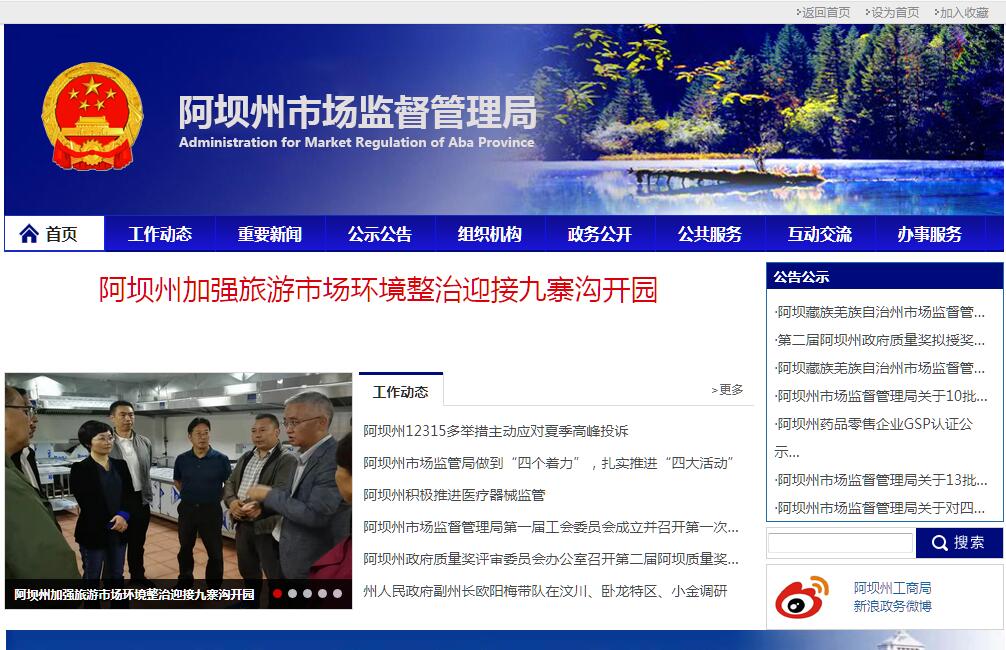 阿坝州市场监督管理局主要职责是:(一)负责全州市场综合监督管理工作。起草市场监督管理有关自治法规、规章和规范性文件草案。组织实施质量强州、食品安全、标准化和知识产权战略,拟订并组织实施全州食品安全等规划,规范和维护市场秩序,营造诚实守信、公平竞争的市场环境。(二)负责全州市场主体统一登记注册。负责全州各类企业、农民专业合作社和从事经营活动的单位、个体工商户以及外国(地区)企业、常驻代表机构等市场主体的登记注册和监督管理工作。建立市场主体信息公示和共享机制,依法公示和共享有关信息,加强信用监管,推动市场主体信用体系建设。(三)负责组织和指导全州市场监督管理综合执法工作。指导全州市场监管综合执法队伍整合和建设,推动实行统一的市场监管。组织查处和督办大案要案、疑难案件、跨区域案件。规范市场监督管理行政执法行为。(四)负责全州反垄断统一执法。统筹推进竞争政策实施,按照权限指导实施公平竞争审查制度。依法依授权对经营者集中行为进行反垄断审查,负责垄断协议、滥用市场支配地位和滥用行政权力排除、限制竞争等反垄断执法工作。指导在州企业在国外的反垄断应诉工作。(五)负责监督管理全州市场秩序。依法监督管理市场交易、网络商品交易及有关服务的行为。组织指导查处价格收费违法违规、不正当竞争、违法直销、传销、侵犯商标专利知识产权和制售假冒伪劣行为。指导广告业发展,监督管理广告活动。依法查处无照生产经营和相关无证生产经营行为。依法开展消费者权益保护工作。指导州保护消费者权益委员会开展工作。(六)负责全州宏观质量管理。组织实施质量发展的制度措施。统筹全州质量基础设施建设与应用。会同有关部门组织实施重大工程设备质量监理制度,组织产品质量事故调查,贯彻实施缺陷产品召回制度,监督管理产品防伪工作。(七)负责全州产品质量安全监督管理。负责产品质量监督抽查和风险监控工作,组织实施质量分级制度、质量安全追溯制度。负责工业产品生产许可管理。负责纤维质量监督工作。(八)负责全州特种设备安全监督管理。综合管理特种设备安全监察、监督工作,监督检查高耗能特种设备节能标准和锅炉产品环境保护标准的执行情况。(九)负责全州食品安全监督管理综合协调。统筹指导全州食品安全工作。负责食品安全应急体系建设,组织指导食品安全事件应急处置和调查处理工作。建立健全食品安全重要信息直报制度。承担州食品安全委员会日常工作。(十)负责全州食品安全监督管理。建立覆盖食品生产、流通、消费全过程的监督检查制度和隐患排查治理机制并组织实施,防范区域性、系统性食品安全风险。推动建立食品生产经营者落实主体责任机制,健全食品安全追溯体系。指导督促食品生产经营企业的安全生产工作,组织开展食品安全监督抽检、风险监测、核查处置和风险预警、风险交流工作。组织实施特殊食品生产、流通、使用的监督管理。(十一)负责全州药品(含中药、民族药,下同)、医疗器械和化妆品安全监督管理。贯彻执行国家有关药品、医疗器械和化妆品监督管理的方针政策和法律法规。贯彻落实国家鼓励药品、医疗器械和化妆品新技术新产品的管理与服务政策。(十二)负责监督全州药品、医疗器械和化妆品标准执行和分类管理。组织拟订并监督实施中药材(含民族药材)地方标准。监督实施中药饮片(含民族药饮片)地方炮制规范。配合实施国家基本药物制度。(十三)负责全州药品、医疗器械和化妆品质量管理。依法依授权监督实施药品、医疗器械生产、经营、使用质量管理规范,依法依授权监督实施化妆品生产卫生标准和技术规范。(十四)负责全州药品、医疗器械和化妆品监督管理。负责药品、医疗器械、化妆品日常监督检查。依法依授权查处药品、医疗器械和化妆品生产、销售、使用的违法行为。指导县(市)药品、医疗器械和化妆品监督管理工作。(十五)负责全州药品、医疗器械和化妆品风险管理。组织开展药品不良反应、医疗器械不良事件和化妆品不良反应的监测、评价和处置工作。依法承担药品、医疗器械和化妆品安全应急管理和投诉举报处置工作。(十六)依法依授权承担我州执业药师注册管理工作,贯彻执行执业药师其他相关管理制度。(十七)负责统一管理全州计量工作。推行法定计量单位,执行国家计量制度,管理计量器具及量值传递和比对工作。规范、监督商品量和计量行为。(十八)负责统一管理全州标准化工作。依法承担地方标准立项、编号和发布等工作,协调指导地方标准、团体标准制定工作,依法对标准制定和实施情况开展监督。(十九)负责统一管理全州检验检测工作。规范检验检测市场,完善检验检测体系,指导协调检验检测行业发展。(二十)负责统一管理全州认证认可工作。监督管理认证认可和合格评定工作。(二十一)负责市场监督管理科技和信息化建设、新闻宣传。(二十二)负责全州知识产权监督管理。贯彻落实国家、省知识产权战略、法规,拟订全州知识产权规划,负责知识产权的保护,负责组织实施商标、专利执法工作。(二十三)负责促进全州民营经济发展。负责全州民营经济发展工作的任务制定、调查研究、统筹协调、督促落实及民营企业