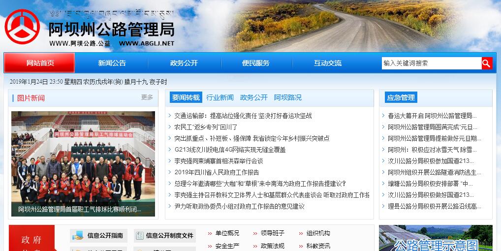 阿坝州公路管理局前身为1962年7月11日由四川省交通厅人委会以川交(62)字第48号文批准成立的四川省阿坝公路养护总段,时属省公路局领导;1991年1月设立路政支队(保卫路政科)后更名为四川省阿坝公路养护管理总段;根据《四川省人民政府批转省交通厅关于进一步改革公路养护管理体制报告的通知》(川府发(1993)25号)精神,经阿坝州人民政府第19次常务会议同意,于1994年1月12日更名为阿坝藏族羌族自治州公路管理局(阿编发(1994)02号文件),于1994年8月10日成建制下放给阿坝州管理(四川省机构编制委员会川编发(94)79号文件),隶属于阿坝州交通局领导,为正县级公益性事业单位。下设党委办公室、行政办公室、工会办公室、监察审计科、政工科、劳动人事科、路政支队、总工办、工程科、农村公路建设管理科、财务科、机料科、安全保卫科等13个科室和机关党支部、团委2个兼职管理部门;辖14个公路管理分局(马尔康、金川、小金、汶川、理县、黑水、茂县、松潘、九寨沟、若尔盖、红原、刷经寺、阿坝、壤塘)并实行垂直管理,另设机具站、干休所2个科级下属单位;在全州设212个公路养护站;核定编制(事业)2624人。其中,阿坝州公路管理局路政管理支队现有专职路政管理人员132人,下设14个路政管理大队于各公路分局由分局和支队共同领导,支队在全州设固定超限检测站4个(汶川彻底关、九寨沟上甘座、若尔盖红星、小金猛固桥)和流动超限检测站3个。 截止2010年12月底,全局共有职工3751人。在职职工1785人,其中管理人员464人(专职路政管理人员132人),养护工人1321人。有离退休职工1966人。存在供养人员627人。共有筑养机械380余台(辆),其中自卸运输车41辆、小四轮11辆、工具运输车15辆,平板拖车1辆、特种专用车17辆(路况检测车1辆、路面清扫车7辆、多功能清洗车6辆、洒水车3辆)、装载机100台、挖掘机16台、推土机3台、压路机28台、拌合机15台、洒布机7台、空压机18台、碎石机19台、发电机42台、照明车1台和切割机、平板夯、冲击夯等其它机械50余台。管养阿坝州境内国省干线公路1963.3公里,其中:国道643.3公里,省道1320公里。其主要职责:在州交通运输局的领导下,管理全州公路,统筹国省干线公路的养护管理;按照州交通运输局下达的经费和要求,编制年度实施计划;负责协调县与县之间的公路养护管理关系;负责组织实施公路遭受自然灾害的抢修恢复;指导县公路管理分局的养护管理工作;完成州交通运输局交办的其他任务。