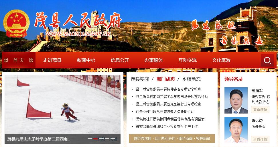 | 网站简介: 茂县是四川省阿坝藏族羌族自治州下辖县,位于四川省西北部、阿坝藏族羌族自治州东南部的青藏高原东南边缘,地理坐标为东经102°56′~104°10′,北纬31°25′~32°16′,地跨岷江和涪江上游高山河谷地带,东西长116.62千米,南北宽93.73千米,幅员面积3903.28平方公里。截至2012年,茂县辖3镇、18乡,共149个行政村、3个居委会,总人口约11万人,是全国最大的羌族聚居县,除羌族外,境内还居住着汉族、藏族、回族等17个民族。2018年7月31日,四川省政府批准茂县退出贫困县序列。 |