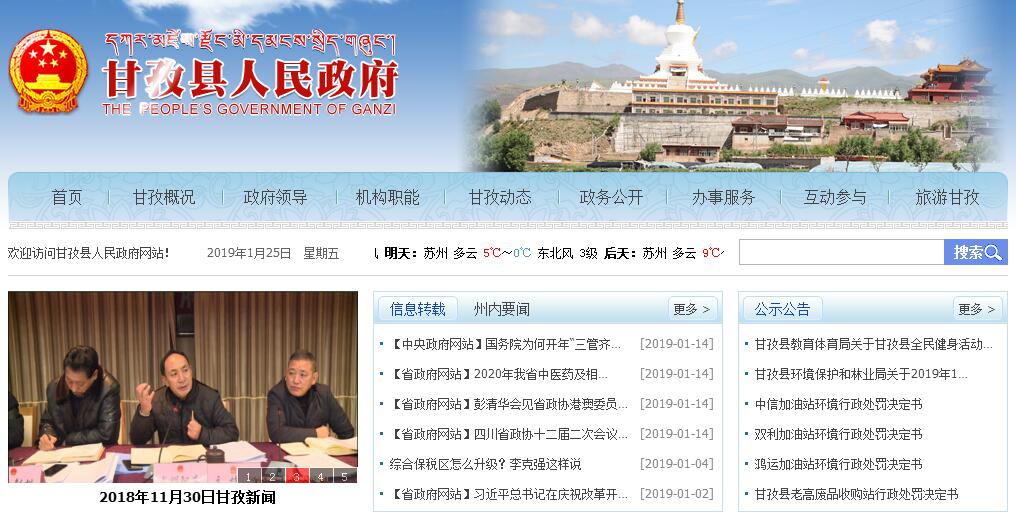 拥有1300多年建制史的甘孜,因五世达赖弟子霍·曲吉昂翁彭措在此创立第一座格鲁巴寺庙而得名。上下千年,纵古论今,甘孜得“天时”,拥“地利”,江山多娇,英雄辈出,人杰地灵。内连康定、成都,外接青海、西藏、甘肃,作为康北交通枢纽,历来商贾云集,生意兴旺,堪为康北经贸中心。甘孜幅员宽广,土地肥美,牧场无垠,水丰草茂,五谷丰登,羊肥马壮,堪称“雪域明珠”。“甘孜”藏语乃洁白美丽之意。这里自然风光旖旎,良哥山、巴颜额拉山、果拉狼山、少鲁里山巍峨四周,雅砻江象一条碧绿的飘带缓缓渡过广袤肥沃的田野。这里有景色秀美,相传是莲花生大师在藏区点化的24座神山之一的奶龙神山和充满神秘色彩的扎日拥康神山,有探险旅游的好去处扎曲河,更有广阔无垠、牧歌悠扬的达通玛草原风光。甘孜人杰地灵。千百年来,世代生息繁衍在这片土地上的勤劳勇敢的藏族人民,用他们惊人的智慧,超常的创造力谱写了灿烂辉煌,值得整个藏民族骄傲和自豪的历史。古朴庄严的甘孜寺、大金寺、德贡波、东谷寺等43座古刹名寺,为甘孜这块灿烂的明珠更加增彩溢辉;五大教派齐全的藏传佛教、风格独特的寺庙建筑、民间建筑以及藏画、手工艺品、古朴风韵的民间舞蹈、文学艺术等,特别是名扬天下的甘孜踢踏为甘孜奠定了厚重的文化低蕴,甘孜堪称文化之都。甘孜人才辈出,群星灿烂。这里有岭·格萨尔的传奇故事和古老踪迹。这片古老而神奇的土地上曾孕育出了噶玛噶举教派的创始人都松钦巴,倡建霍尔十三座寺庙的哲蚌寺法王昂翁彭措,著名爱国人士阿旺嘉措,著名宗教爱国人士五世格达活佛,并谱写了朱德总司令与五世格达活佛之间“军爱民、民拥军”的千古颂歌。甘孜县还诞生了新中国培养的第一位藏族将军——杨世喜将军,孕育出了第一位藏族博士——格勒博士。历史在发展,社会在进步,抚今思昔,催人奋进。甘孜这块美丽而古老的土地,在中国共产党的领导下,政治稳定,社会安定,各项事业健康发展。特别是改革开放以来,经济空前繁荣,现代康北经贸中心、交通中心、教育中心、卫生中心已具雏形,相信在不久的将来,“雪域明珠”将以更加繁荣美好的姿态欢迎四方宾客。