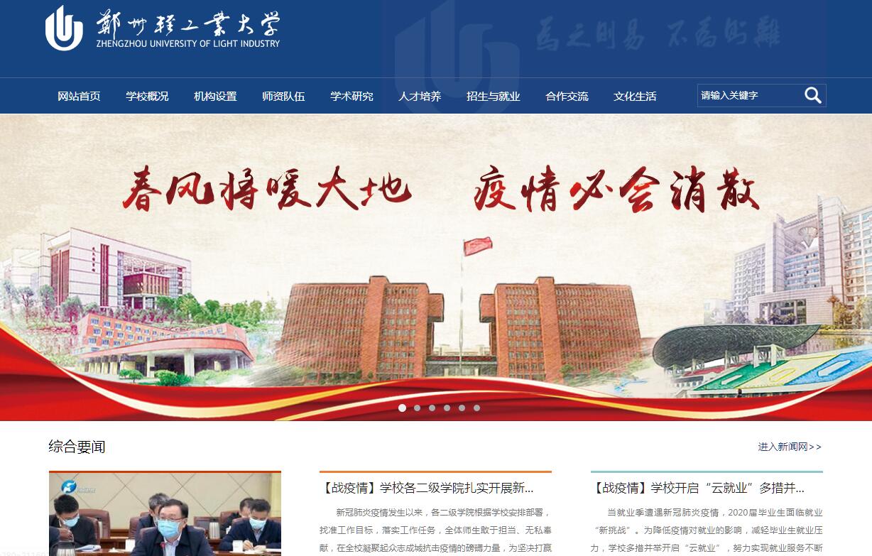 郑州轻工业学院位于河南省会郑州市,是河南省重点建设高校。建校以来,学校秉承“为之则易、不为则难”的校训,抓住国家促进高等教育发展的历史机遇,不断开拓创新、砥砺奋进,经过40多年的发展,已经成为一所以工为主,工、理、文、艺、经、管、法、教、农等多学科协调发展的普通本科院校。学校创建于1977年,原隶属国家轻工业部;1998年转属河南省人民政府;2009年被列为河南省博士学位授予单位立项建设高校;2011年河南省人民政府和国家烟草专卖局签约共建郑州轻工业学院;2018年被确定为河南省博士学位授予重点立项建设单位。学校办学特色鲜明,学科优势突出,近年来,大力推进教育教学改革,不断调整优化学科专业结构,教育质量稳步提高。学校拥有14个一级学科硕士授权点、11个二级学科硕士授权点。学校现有65个本科专业,其中4个国家级特色专业建设点,1个国家级专业综合改革试点专业,6个教育部“卓越工程师教育培养计划”试点专业,14个省级特色专业建设点,13个省级专业综合改革试点专业,有20门国家级和省级精品课程、10门省级精品资源共享课程、1门省级精品视频公开课、4门省级双语示范课程,有8个省级教学团队、11个省级实验教学示范中心。学校高度重视学科建设,主动适应经济社会和行业发展需要,不断凝练学科方向,突出学科特色。目前拥有河南省优势特色学科“食品科学与工程”,省级一级学科重点学科14个、省级二级学科重点学科3个,食品科学与工程、化学工程与技术、电气工程、机械工程等传统优势学科实力雄厚。师资队伍 学校始终坚持办学以人才为本、以教师为主体,大力推进人才强校战略,汇聚和造就了一批高水平学科带头人和学术骨干。学校现有教职工1800余人,其中拥有博士学位教师600余人。拥有双聘院士、国家“千人计划”人选、国家“万人计划”教学名师、河南省“百人计划”人选、省级特聘教授、享受政府津贴专家、省管优秀专家、省级中青年骨干教师、省厅级以上学术技术带头人等200余人,形成了以院士及河南省特聘教授为核心,以学术造诣深厚的教授、博士为中坚,以中青年教师为支撑的专业技术职务、学历层次和年龄结构比较合理,专兼结合,具有较高教学科研水平的师资队伍。学校持续推进“招生-培养-就业”联动改革,人才培养质量稳步提升。学校现有在校生20000余人。学校一直面向全国招生,已为国家输送 10 余万名毕业生,毕业生整体就业率始终保持在95%以上,学校被评为“全国毕业生就业典型经验高校”“河南省普通高校毕业生就业工作优秀单位”和“河南最具就业竞争力示范院校”。全国烟草行业、家电行业、电池行业、食品行业、工业设计行业的大批中高层管理人员和技术骨干都是我校的毕业生。学校获得“全国贯彻《学校体育工作条例》优秀高等学校”“全国高校军训先进单位”“河南公众最满意的十佳本科院校”“河南最具影响力的十大教育品牌”“河南考生心目中最理想的高校”等荣誉称号。科学研究 学校设有环境污染治理与生态修复河南省协同创新中心、食品生产与安全河南省协同创新中心、河南省信息化电器重点实验室、河南省表界面科学重点实验室、河南省机械装备智能制造重点实验室、国家烟草专卖局烟草工业生物技术重点实验室、应急平台信息技术河南省工程实验室等省部级学科平台27个,加入了河南省国家大学科技园。学校拥有1个教育部科技创新团队、15个河南省科技创新团队。近五年,承担包括国家科技支撑计划项目、国家自然科学基金项目和国家社会科学基金项目在内的各类纵横向科研项目1800多项,其中承担国家级科研课题200余项,获国家级科技奖励3项、省部级奖励90余项。自然科学研究论文被SCI、EI、ISTP收录的数量1000余篇,出版专著和教材400余部。《轻工学报》是中国科技核心期刊、中国高校优秀科技期刊;《郑州轻工业学院学报》(社会科学版)是全国优秀社科学报、河南省二十佳期刊。社会服务 学校与郑州市、许昌市、济源市等地市签订了合作协议,与国内一批烟草企业建立了战略联盟,与轻工及相关领域的大型企业如三全、双汇等知名食品企业,新飞、海尔等知名家电企业保持着长期而深入的合作关系,为其提供重要的技术支持;香精香料、动力锂离子电池、新型功能材料、食品加工、轻工机械、智能控制的研究等项目,在实现产业化方面进行了积极的探索,并长年为红塔集团、海尔集团、美的集团、神马集团等著名企业提供技术和人才支持。办学条件 学校现有东风校区、科学校区和禹州实习实训基地,占地面积2100余亩,校舍建筑面积75万平方米。学校设施先进,环境优美,教学科研仪器设备总值近7亿元,拥有600MHz超导核磁共振波谱仪、X射线光电子能谱仪、X射线衍射仪、气相色谱四级杆飞行时间质谱仪、稳态瞬态荧光光谱仪、透射电子显微镜、热场发射扫描电子显微镜、高分辨液相色谱质谱联用仪等一大批先进的仪器设备;拥有电子图书系统和计算机网络服务体系,Elsevier、Wiley、IEEE、SCI和中国知网全库等数据库176个,其中外文数据库86个。拥有功能齐全、覆盖全校的千兆校园网,出口带宽达到27G。建有河南省教育信息港,是河南省智慧校园建设示范学校。对外交流 学校在利用国际和社会教育资源开展合作办学方面走在河南高校的
