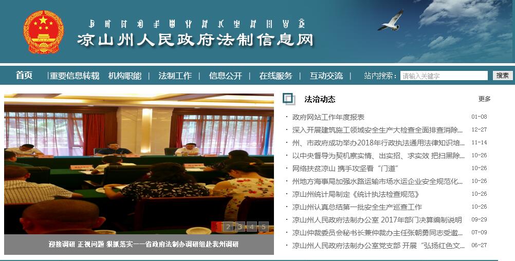 凉山彝族自治州人民政府法制办公室主要职责:贯彻执行国家依法行政工作的方针、政策和法律、法规。负责全州依法行政的调查研究、组织协调和监督指导工作。拟订全州依法行政规划和年度计划。负责县市人民政府和州政府部门规范性文件的审查、备案、清理、公布;承办州政府规范性文件的解释工作;负责本级政府规范性文件合法性审查和清理工作;指导全州规范性文件的审查及清理工作。负责地方自治立法基础工作,承办上级人大、政府下发的法律、法规、规章草案的征求意见工作。负责州政府重大行政决策的合法性审查。指导、监督全州行政复议、行政应诉和行政赔偿工作;承办向州政府申请的行政复议、行政赔偿案件;代理州政府行政应诉案件。依法开展行政执法监督工作,承办行政执法监督案件。协调行政机关在执法中产生的重大矛盾和争议。负责有关法律、法规、规章和规范性文件实施中的指导工作。负责组织实施州政府行政行为听证事项,对县市人民政府和州政府部门听证行为进行指导、监督。承办相对集中行政处罚权申请的审查、上报、考核和指导工作。牵头负责全州行政调解的指导、督促和协调工作。研究行政执法活动带有普遍性的问题,向州政府提出改进工作、完善制度的建议,拟定有关配套的文件和答复意见。负责政府法制理论与实践的研究和交流,开展政府法制宣传、咨询和培训工作。协调全州仲裁机构工作。承办州政府交办的其他事项。