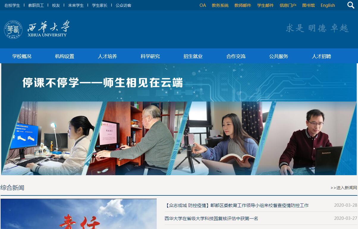 西华大学是一所学科门类齐全、多学科协调发展的省属综合性大学,是国家中西部高校基础能力建设工程重点支持高校,教育部本科教学工作水平评估优秀高校,四川省首批深化创新创业教育改革示范高校,四川省首批文明校园,四川省绿化先进单位。学校始建于1960年,时名四川农业机械学院,是为响应毛泽东主席提出的“农业的根本出路在于机械化”的号召,在当时全国7个大区分别布点所建立的农业机械本科院校之一。1978年,被四川省政府列为省属重点大学。1983年更名为四川工业学院。2003年,四川工业学院与成都师范高等专科学校合并组建西华大学,2008年,四川经济管理学院整体并入。1982年,国务院学位委员会批准学校为首批学士学位授予权单位。1985年,学校开始招收硕士研究生,1990年,国务院学位委员会批准学校具有硕士学位授予权。学校现有校本部、彭州校区、人南校区三个校区,校园面积近3000亩。校本部坐落于中国历史文化名城成都市郫都区,西依望丛帝乡、扬雄故里,岷江水自都江堰而下从校园蜿蜒流过。校园环境大气优雅,具有得天独厚的人文自然环境,是读书治学的理想园地。学校教务管理、党政办公、图书文献、后勤服务等均实现网络化。图书馆面积5万余平方米,藏书250余万册,电子文献6500GB、210余万种。学校是全国收藏《中华再造善本》的100所高校之一。学校全面实施人才强校战略,在省属高校中先行先试“首席科学家”模式,拥有一支学术水平高、教学经验丰富、爱岗敬业的教师队伍,教授、副教授等高级专业技术职务人员 960余名,其中,中组部“万人计划”领军人才、教育部“长江学者”特聘教授、新世纪百千万人才工程国家级人选、国务院政府特殊津贴专家及四川省“千人计划”引进人才、学术技术带头人等各类专家130余人。聘请70余名中国科学院院士、中国工程院院士以及国内外著名专家担任学校特聘教授。人文学院教师唐丹以总分全国第一名的优异成绩获得全国青年教师教学竞赛文科组一等奖,荣获四川省“五一”劳动奖章;电气与电子信息学院教师吴昌东获得全国高校青年教师电子技术基础、电子线路课程授课竞赛全国一等奖。58年办学薪火相传。学校始终坚持社会主义办学方向,落实立德树人根本任务,坚持“立足四川,面向西部,辐射全国”的服务定位,秉持“求是、明德、卓越”的校训,传承“知难而进、自强不息”的优良办学传统,树立“育人为本、质量立校、人才强校、特色兴校、依法治校”的办学理念,坚持“改革创新、开放办学、协调推进、特色发展”的办学思路,主动适应国家和四川省经济社会发展需求,以内涵提升为核心,全面提高人才培养质量和办学水平。学校坚持以本科教育为主,积极发展研究生教育和国际教育,统筹协调、分类指导,形成工、理、管、法、经、艺、文、教、农、医等多学科协调发展的格局。现有27个学院,18个一级学科硕士学位授权学科,12个专业硕士学位类别,68个硕士学位授权点,86个本科专业。全日制在校学生4.5万余人。学校面向全国招生,招收乒乓球、健美操、跆拳道高水平运动队学生和边防军人子女预科。具有面向全国推荐优秀应届本科毕业生免试攻读硕士学位研究生资格。学校拥有国家级和省级特色专业、国家级和省级专业综合改革试点项目、省级应用型人才培养基地、四川省“卓越工程师教育培养计划”专业、四川省“卓越农林师教育培养计划”专业、省级应用型本科示范专业40余个,3个专业通过工程教育专业认证。学校拥有四川省博士后创新实践基地、四川2011计划协同创新中心、四川军民融合协同创新中心、四川省“双一流”建设支持学科、省级重点学科,以及教育部和省级重点实验室、省哲社重点研究基地、省区域与国别重点研究基地、省高校重点实验室和哲社重点研究基地以及其他厅局级平台。近三年承担或参与了400余项国家重大专项、国家自然科学基金、国家社会科学基金等国家级项目和部省级重点科研课题,成果转化及项目合作产生了巨大的直接或间接经济效益,获得国家、部省级科技进步奖和各类成果奖40余项。学校以培养“具有强烈的社会责任感,基础理论扎实、实践能力强、具有创新精神、能够适应国家和地方经济社会发展需要的创新型、复合型、应用型高素质人才”为目标和根本任务,建立有完善的教学质量保障体系,致力于教学质量提高。实施“本科生创新基金资助计划”和“研究生创新基金资助计划”,设立大学生创新创业基金和创新教育学分,加强开放型实验室建设,建有省级大学科技园。学校大学生创新创业俱乐部被评为四川省大学生创新创业俱乐部。学生的综合素质和能力以及实干、创新精神受到用人单位的欢迎和好评,毕业生就业率一直保持在90%以上。近年来,在“挑战杯”全国大学生课外学术科技作品竞赛、中国“互联网+”大学生创新创业大赛、教育部全国大学生网络创新创业大赛、“创青春”创业竞赛、机器人大赛、中国大学生方程式汽车大赛、全国大学生数学建模竞赛、全国大学生电子设计竞赛等国内外重大学科竞赛中,学校获得国家级奖450余项,省级奖840余项。在大学生体育竞赛中获得国家级团体冠军40余个,个人冠军20余人次。土木建筑与环境学院学生团队设计作品获得2017大学生桥梁设计大赛总决赛唯一